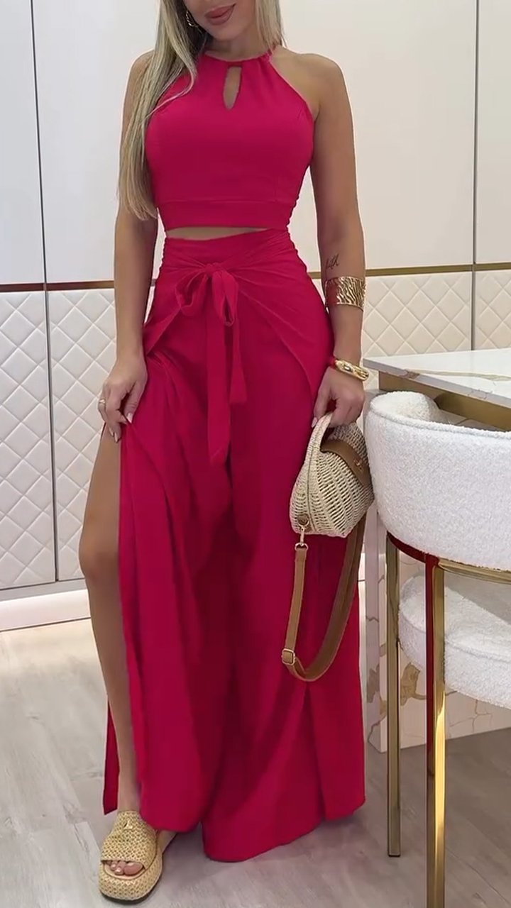 Women's Halter Neck Solid Color Loose Holiday Leisure Suit