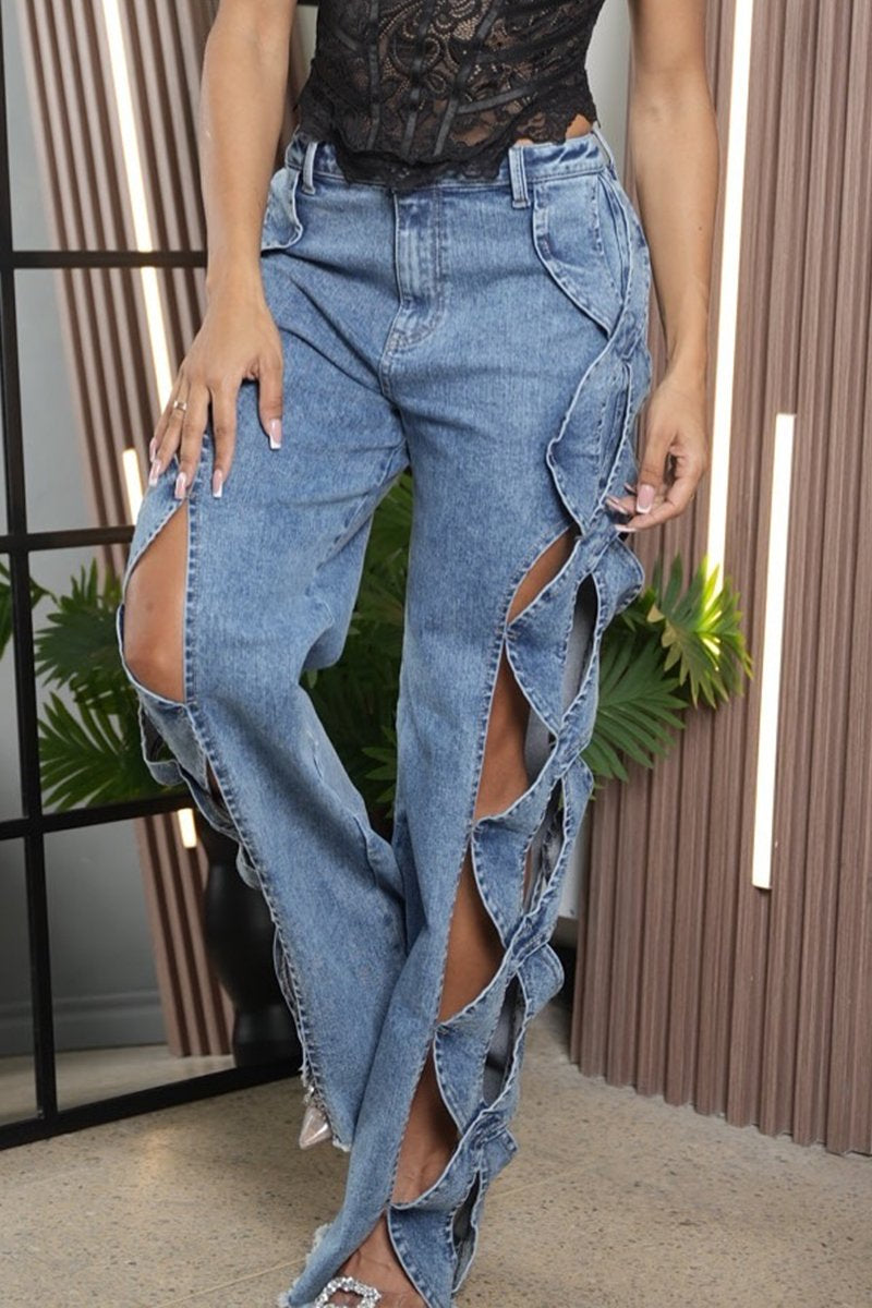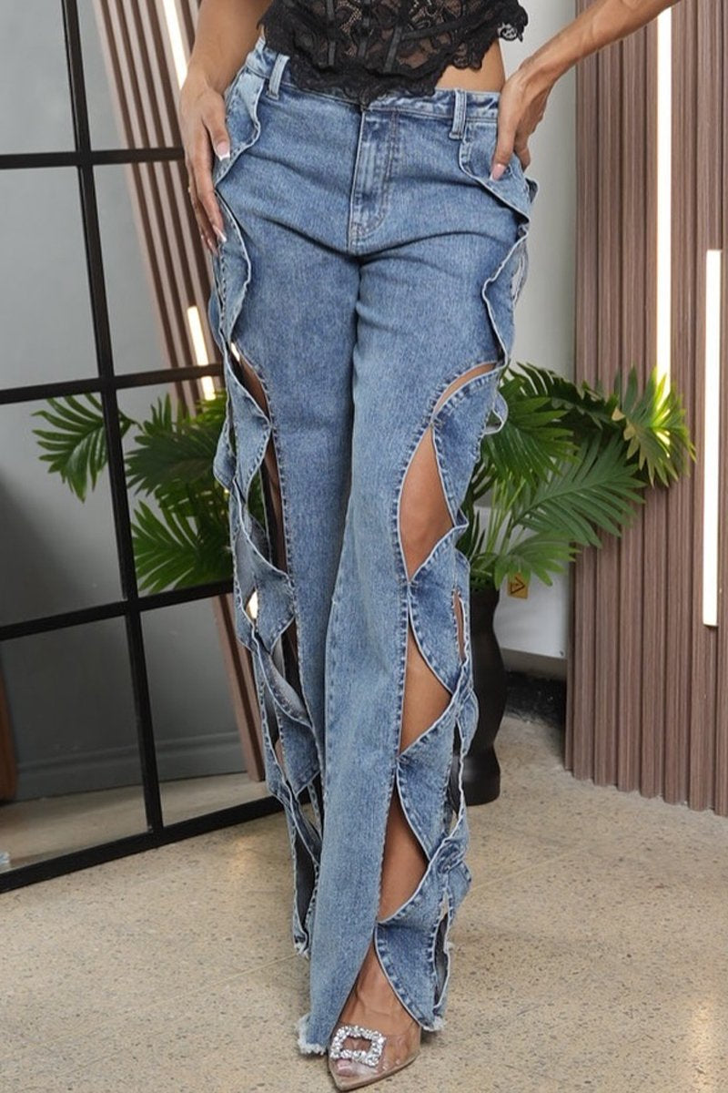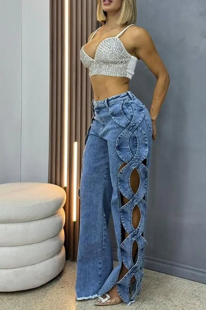Women's Hollow Design Wide-leg Fashionable Jeans