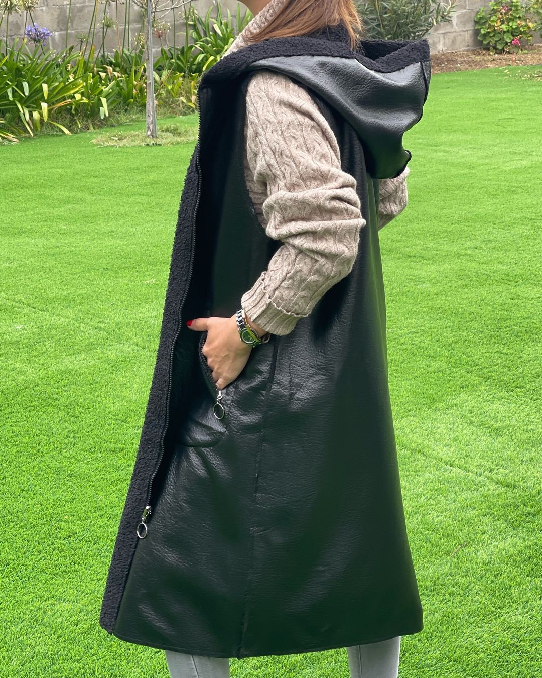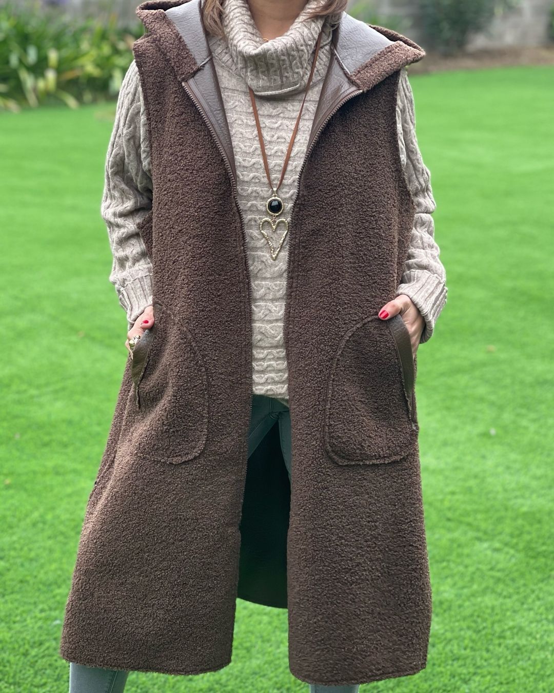 Women's Hooded Double-sided Casual Vest Long Coat