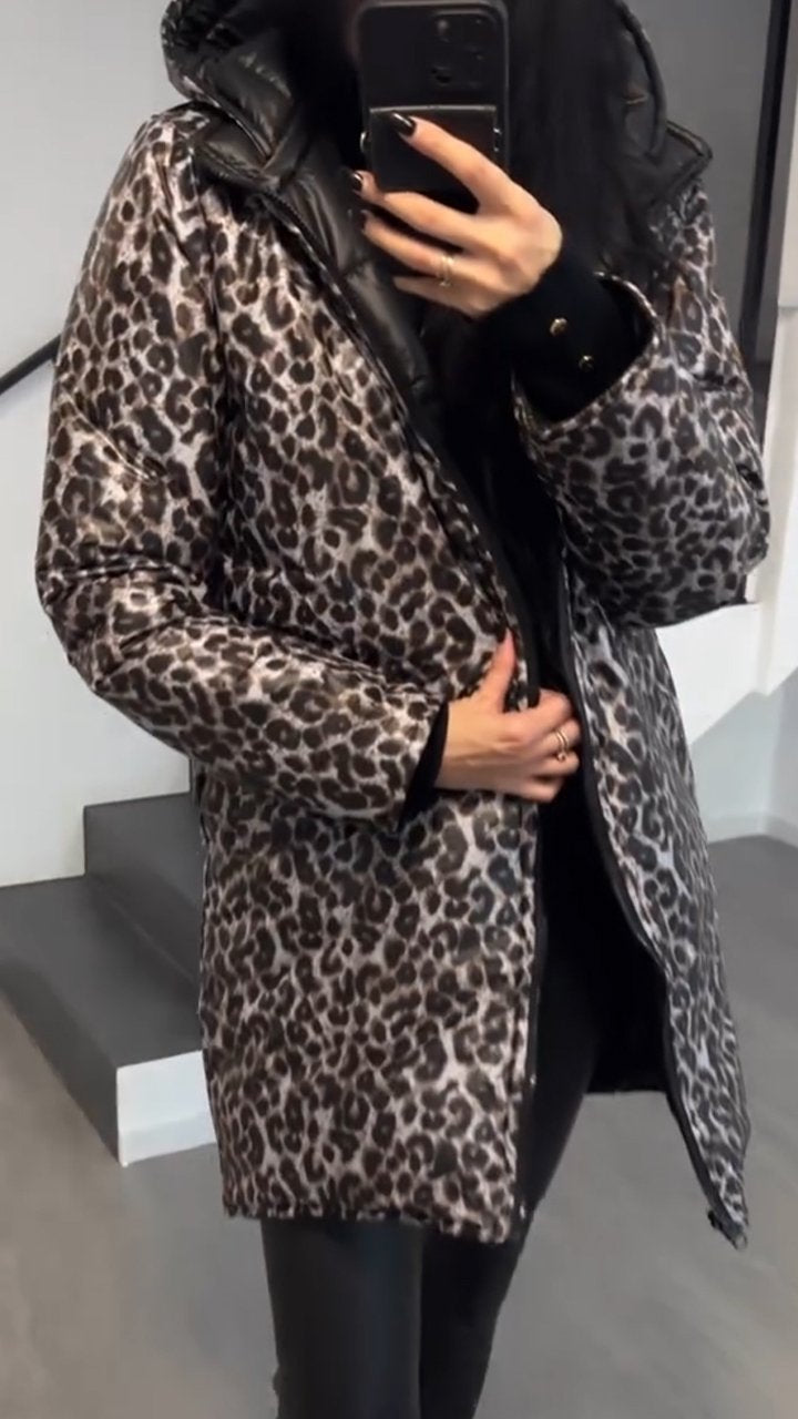 Women's Hooded Leopard + Solid Color Double-Sided Cotton Coat