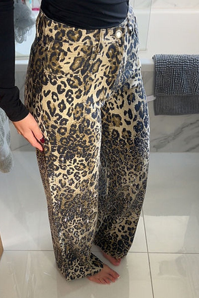 Women's Diamond Shiny Leopard Print Casual Jeans