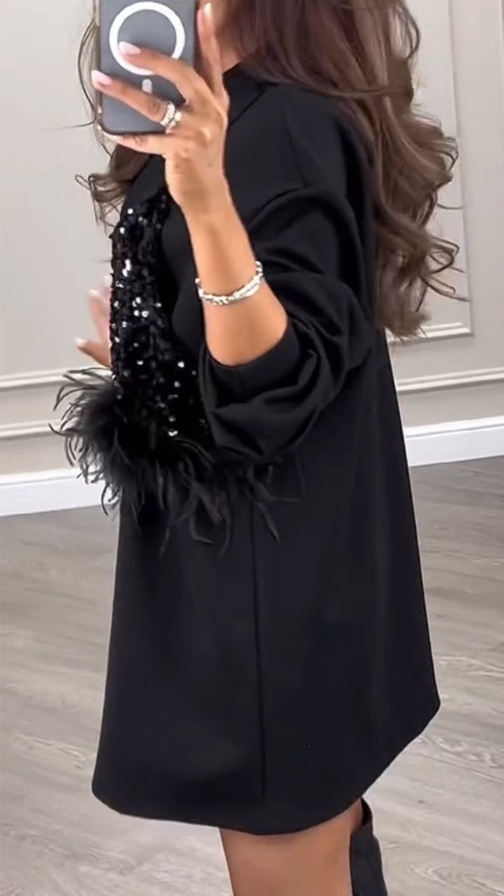 Women's Round Neck Long Sleeve Sequined Fur Stripe Fake Two Piece Party Dress