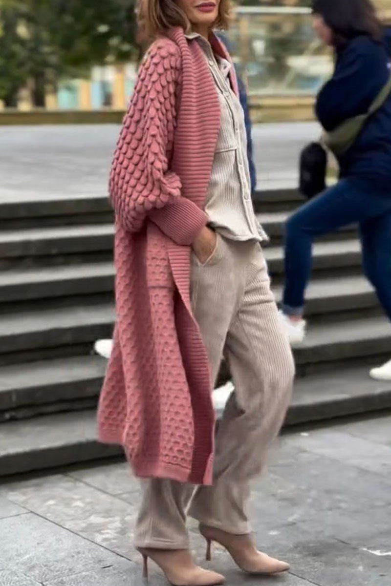 Women's Solid Color Knitted Long Cardigan