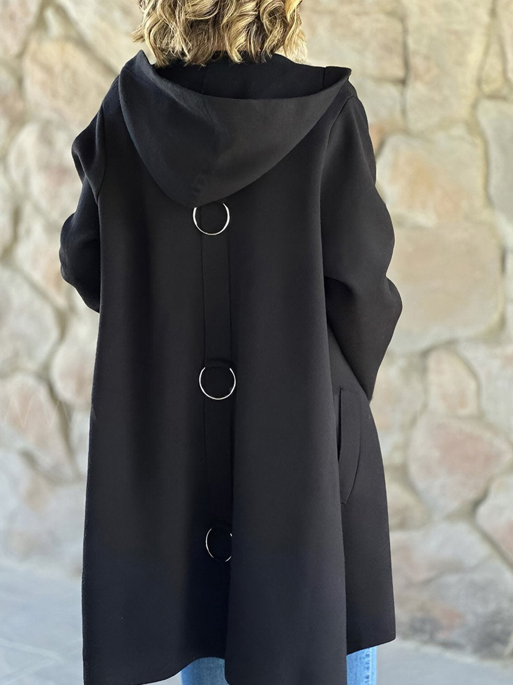 Women's Solid Color Woolen Fabric Hooded Cape Jacket