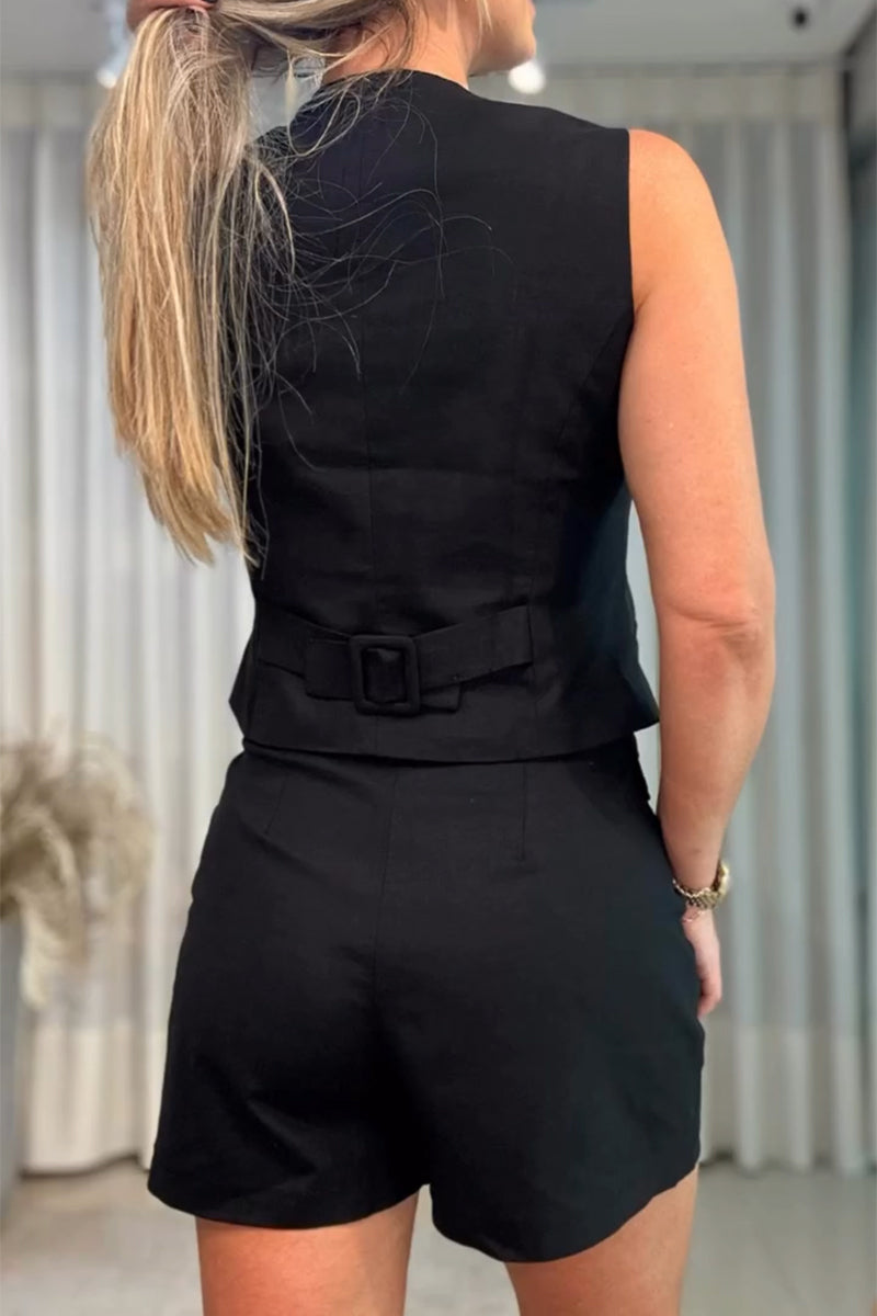 Women's suit casual cotton and linen button top & casual cotton and linen shorts