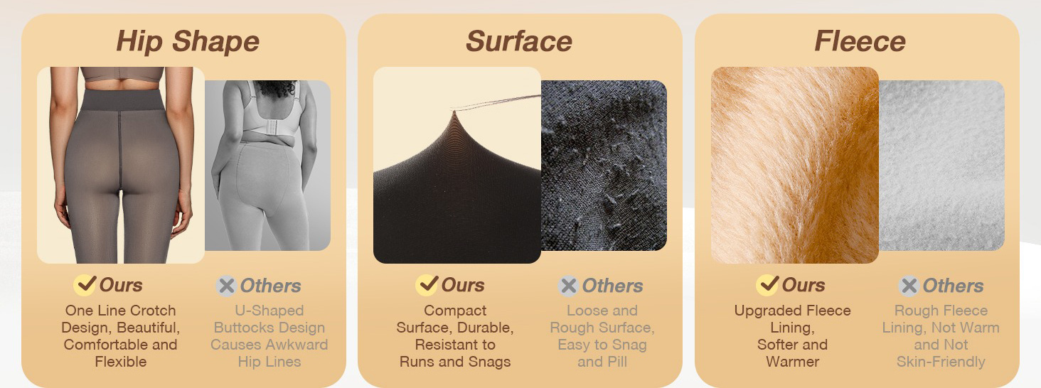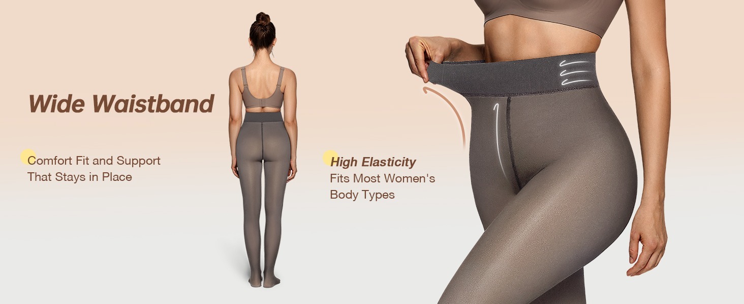 - 🎄Fake Translucent Pantyhose: These translucent fleece leggings are both fashionable and functional. They look sheer from the outside but are lined with warm fleece on the inside. They not only keep you warm during the cold season but also accentuate your figure. Note: this thermal sheer tights are no fleece lined on the feet