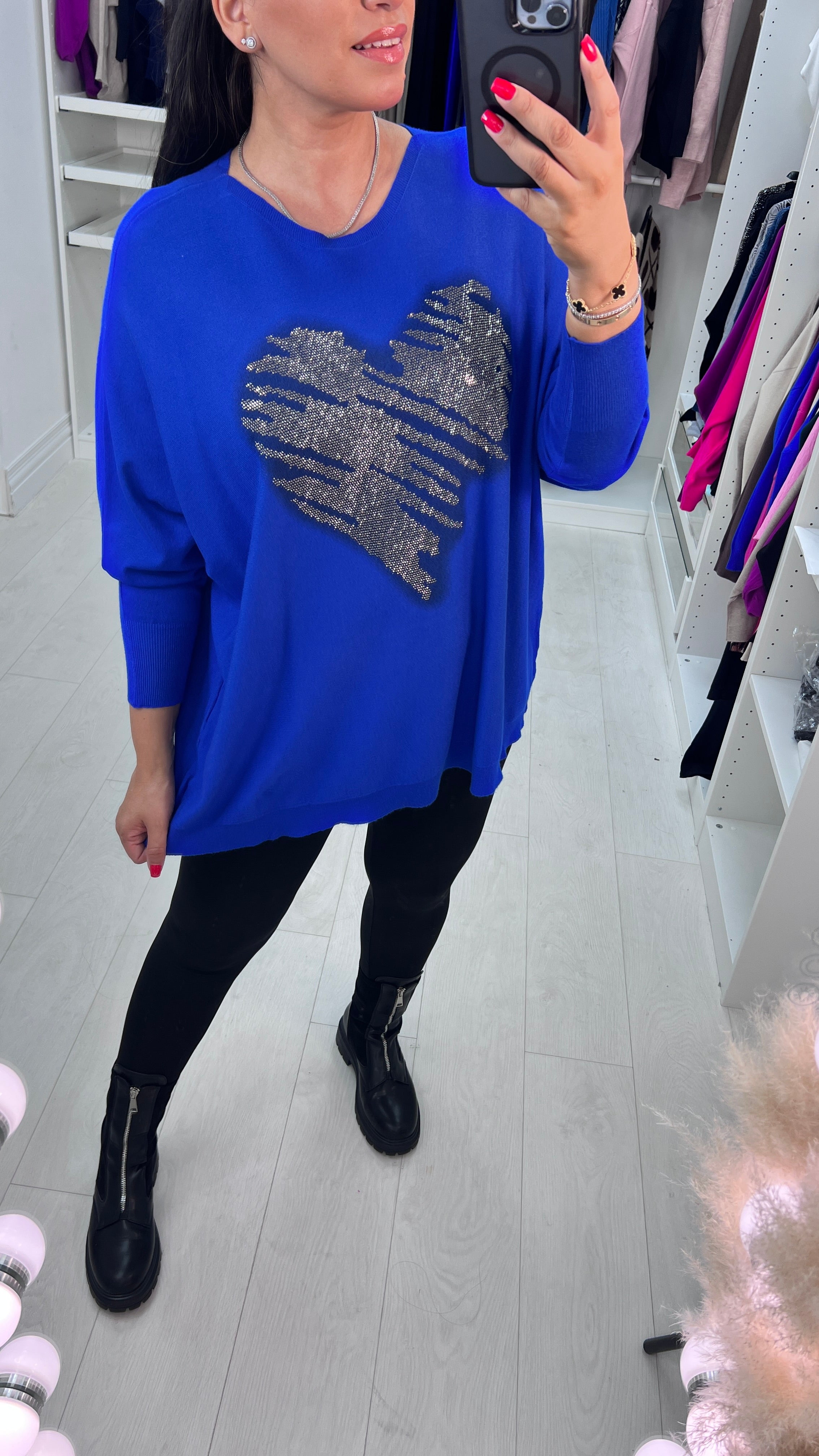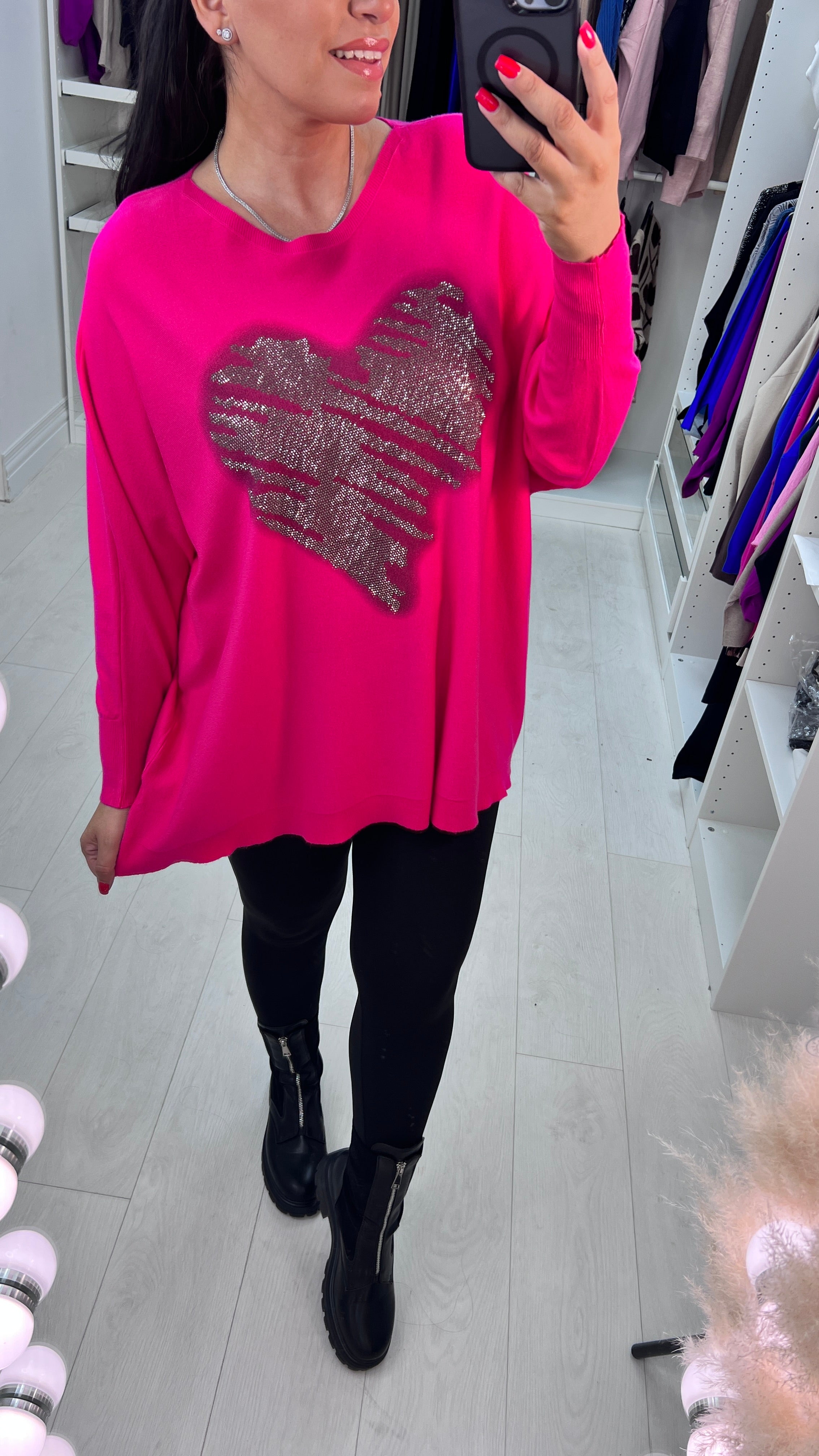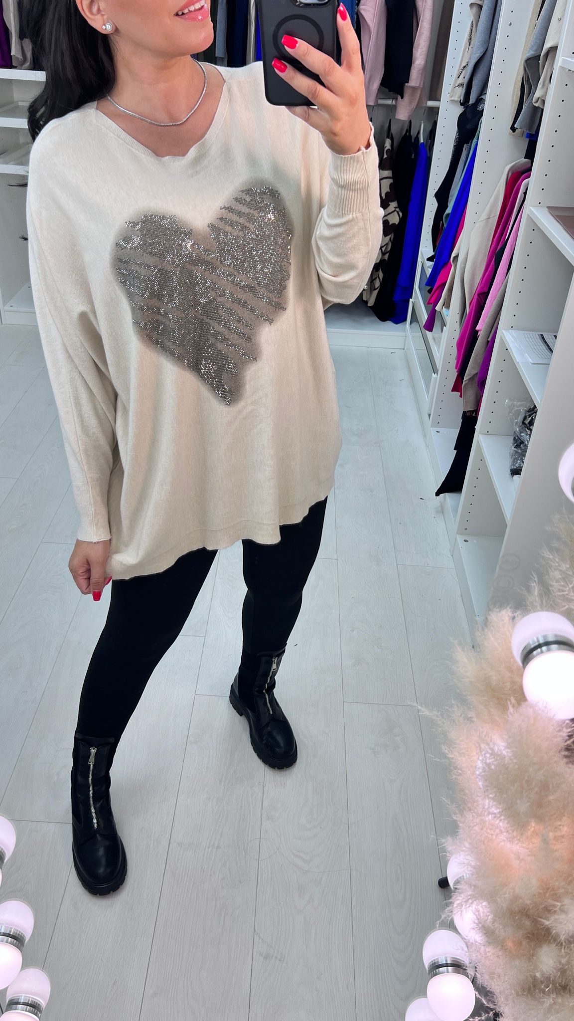 Almeolitta Diamante Studded Heart Drop Sleeve Knit Top