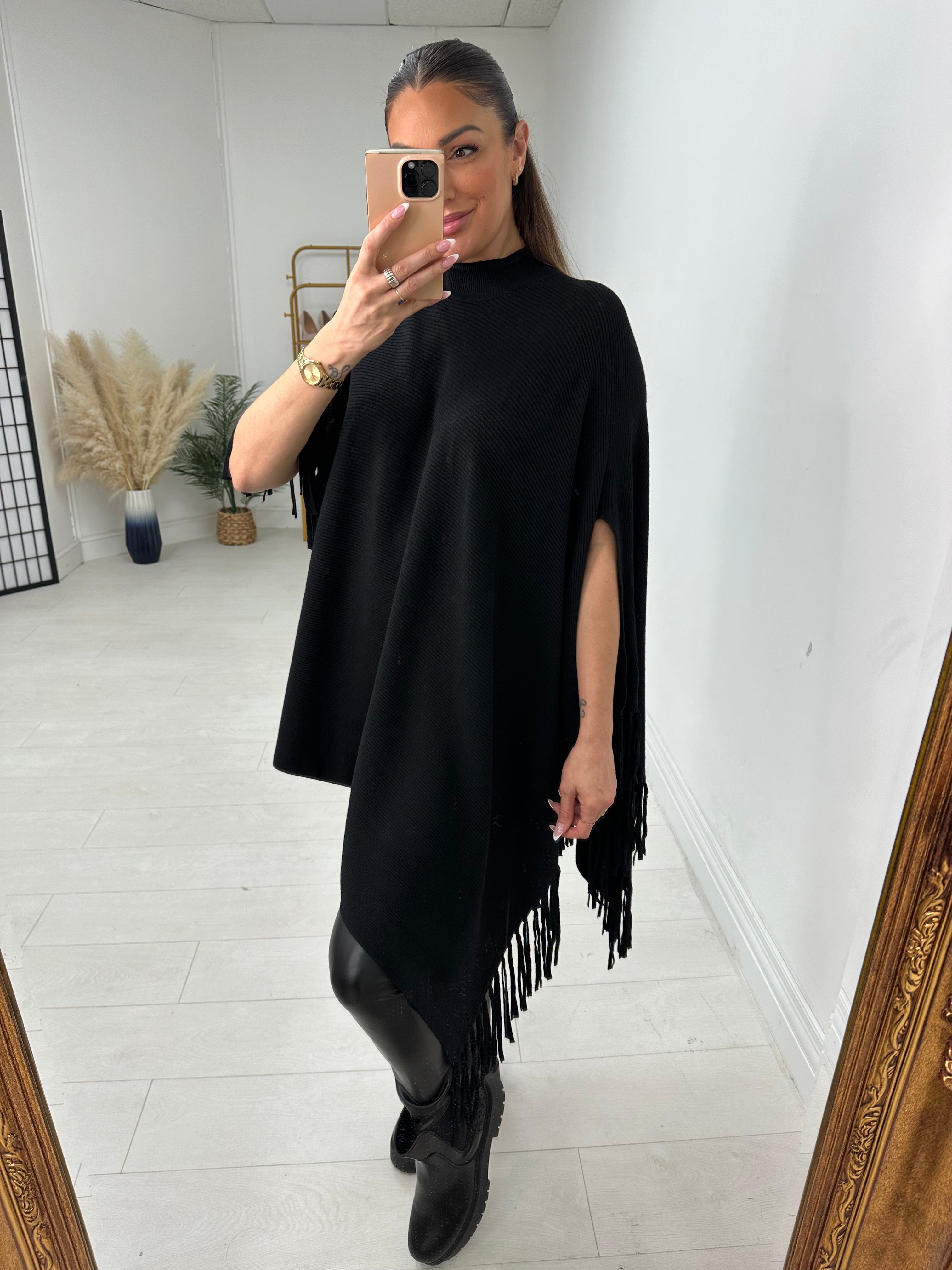 Ava Ribbed Asymmetric Poncho