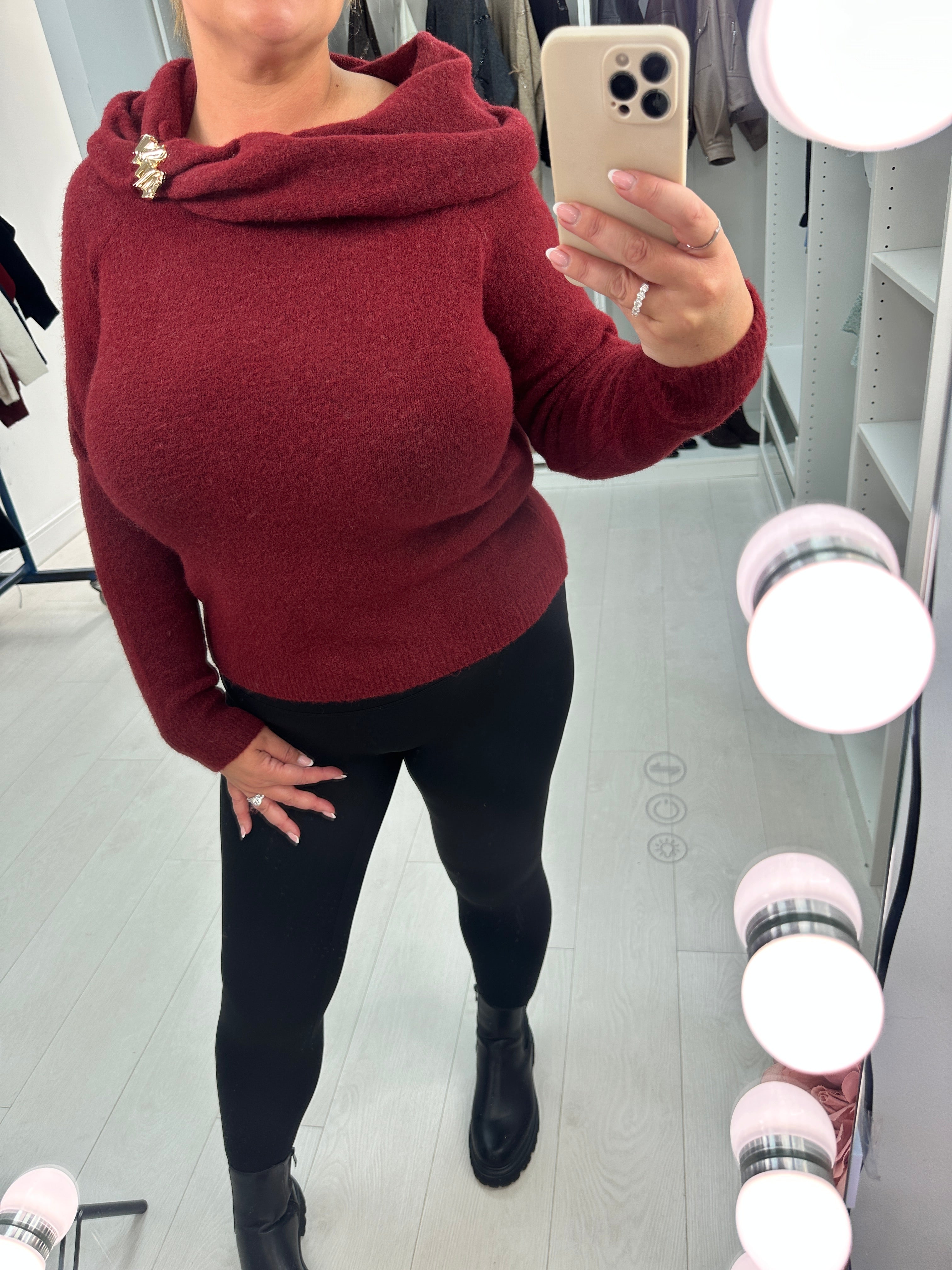 Experience cozy elegance with the Marisa Cowl Neck Brooch Detail Jumper. Crafted from super soft fabric, it features a stylish cowl neck accented by a delicate brooch detail for a touch of sophistication. The long sleeves end in ribbed cuffs, ensuring a comfortable fit that keeps you warm all day. Perfect for adding a refined yet cozy layer to your wardrobe.