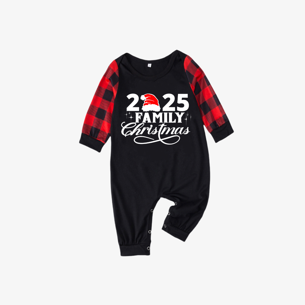 "2025 Family Christmas" Letter Print Black & Red Plaid Family Matching Black Pajamas