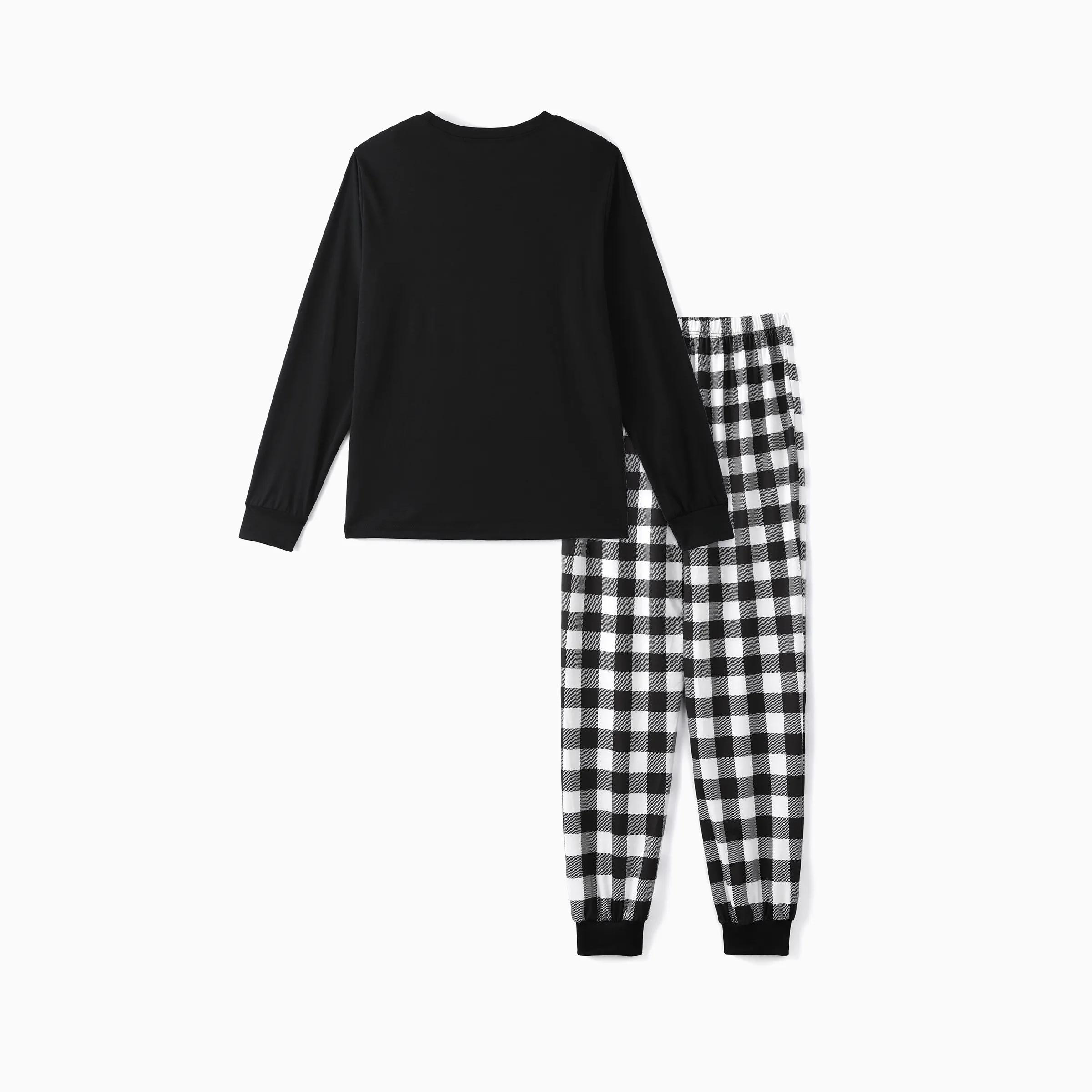 "2025 Family Christmas" Text and Christmas Pattern Black and White Plaid Family Matching Pajamas