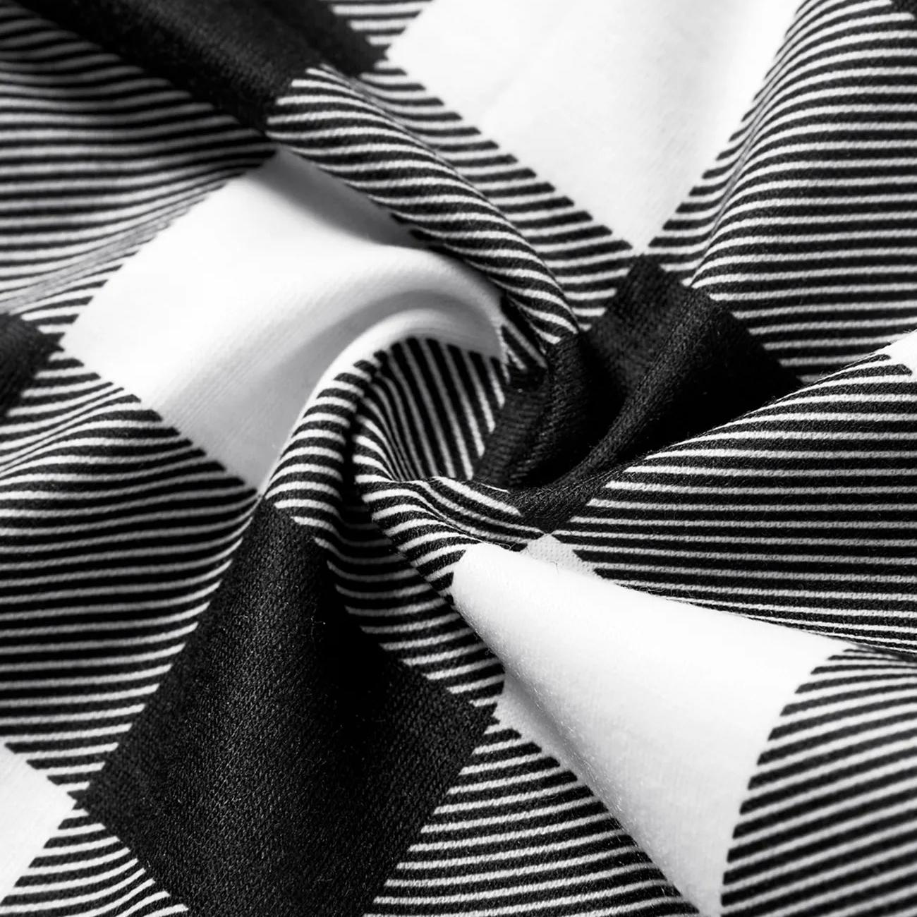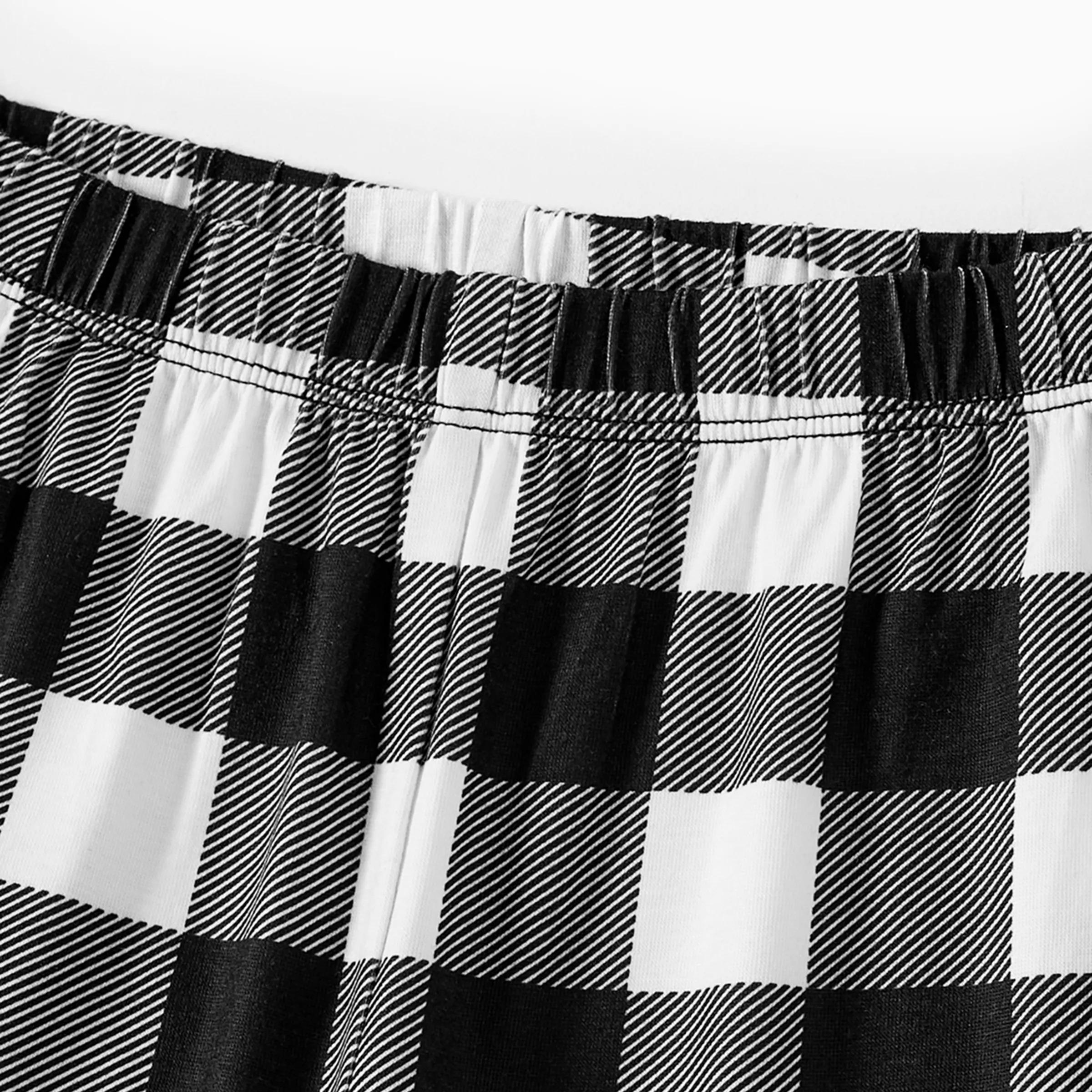 • "2025 FAMILY CHRISTMAS" Text and Sleigh Pattern - Black Long Sleeve Top with Black And White Plaid Pants Family Matching Pajamas