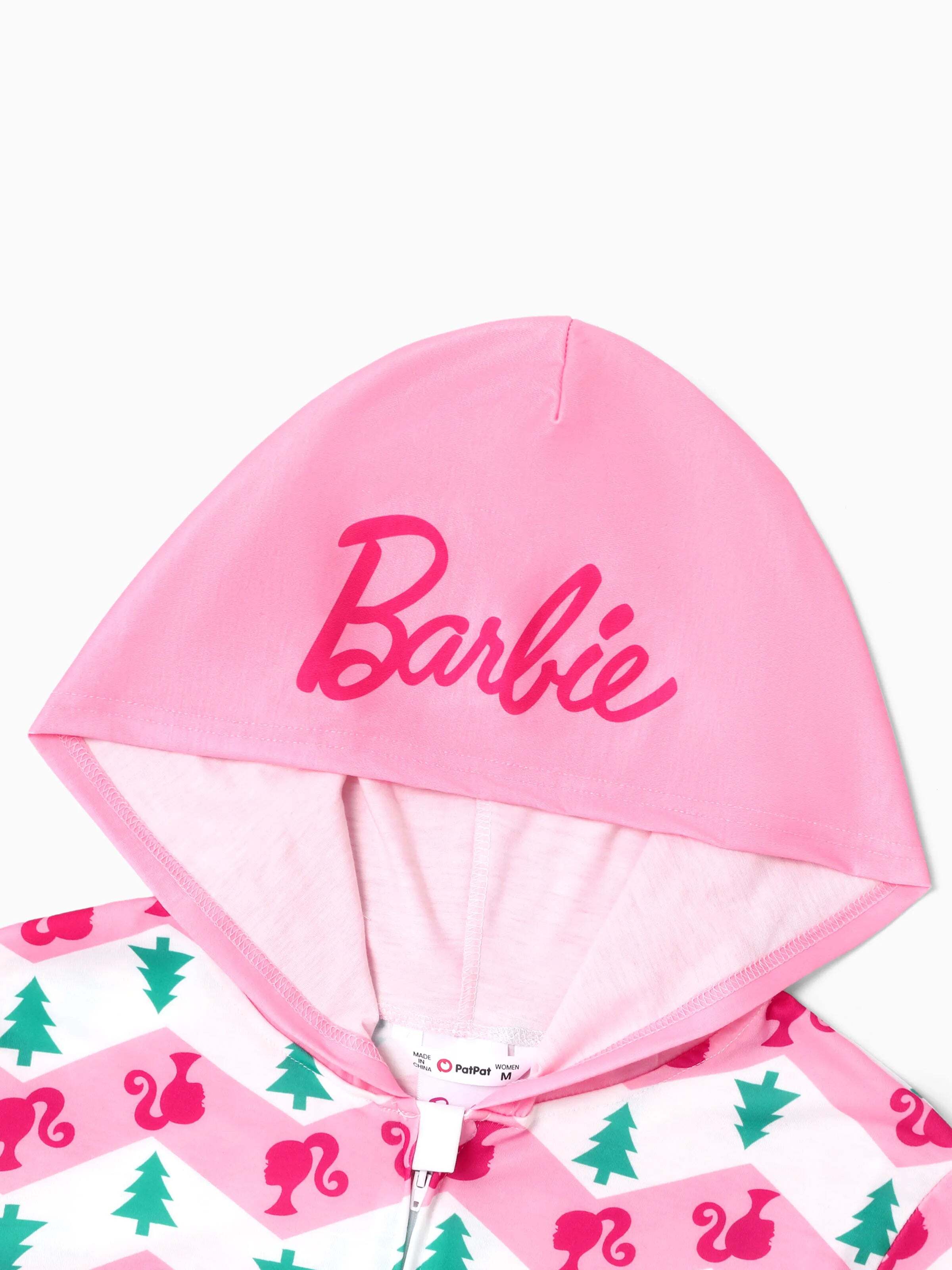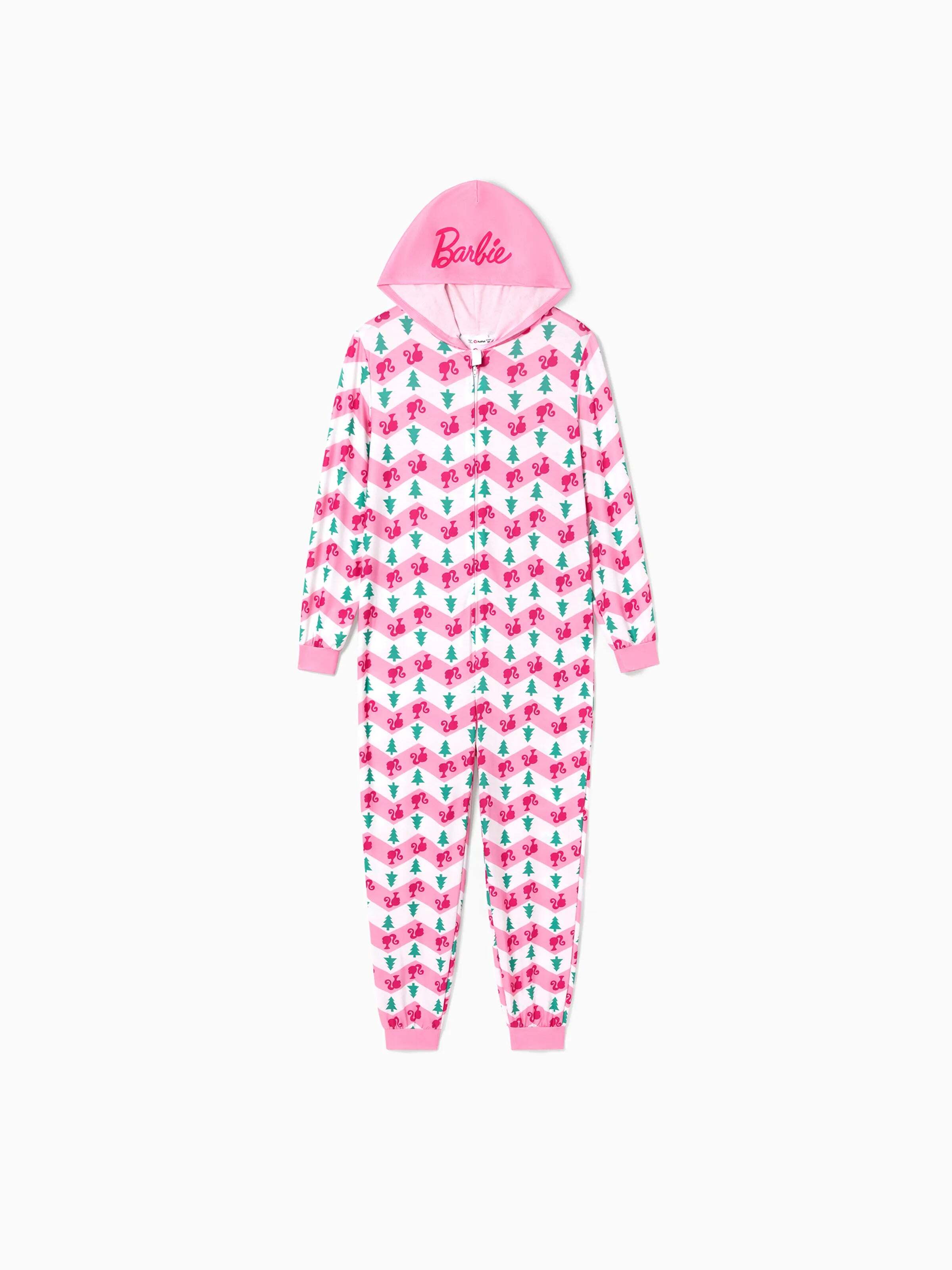 Make your holiday season even more festive with these Barbie-themed family onesies. Featuring a cheerful pink design and a Barbie graphic, these hooded pajamas are perfect for creating memorable family moments and capturing the holiday spirit. Available for all ages, from adults to babies.