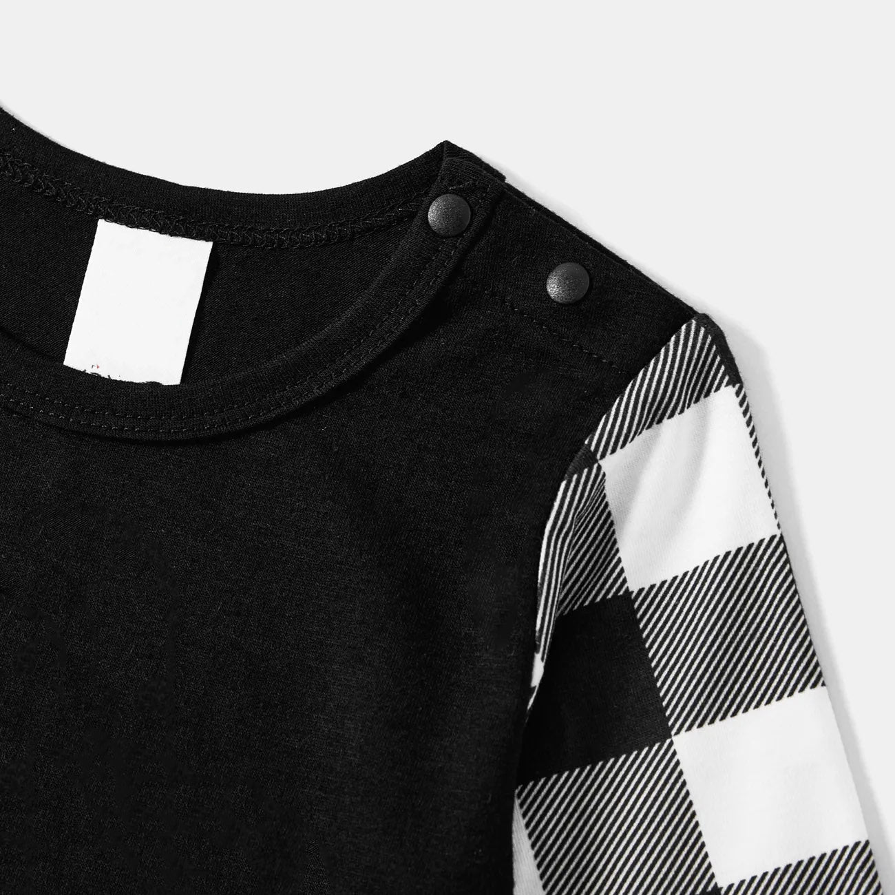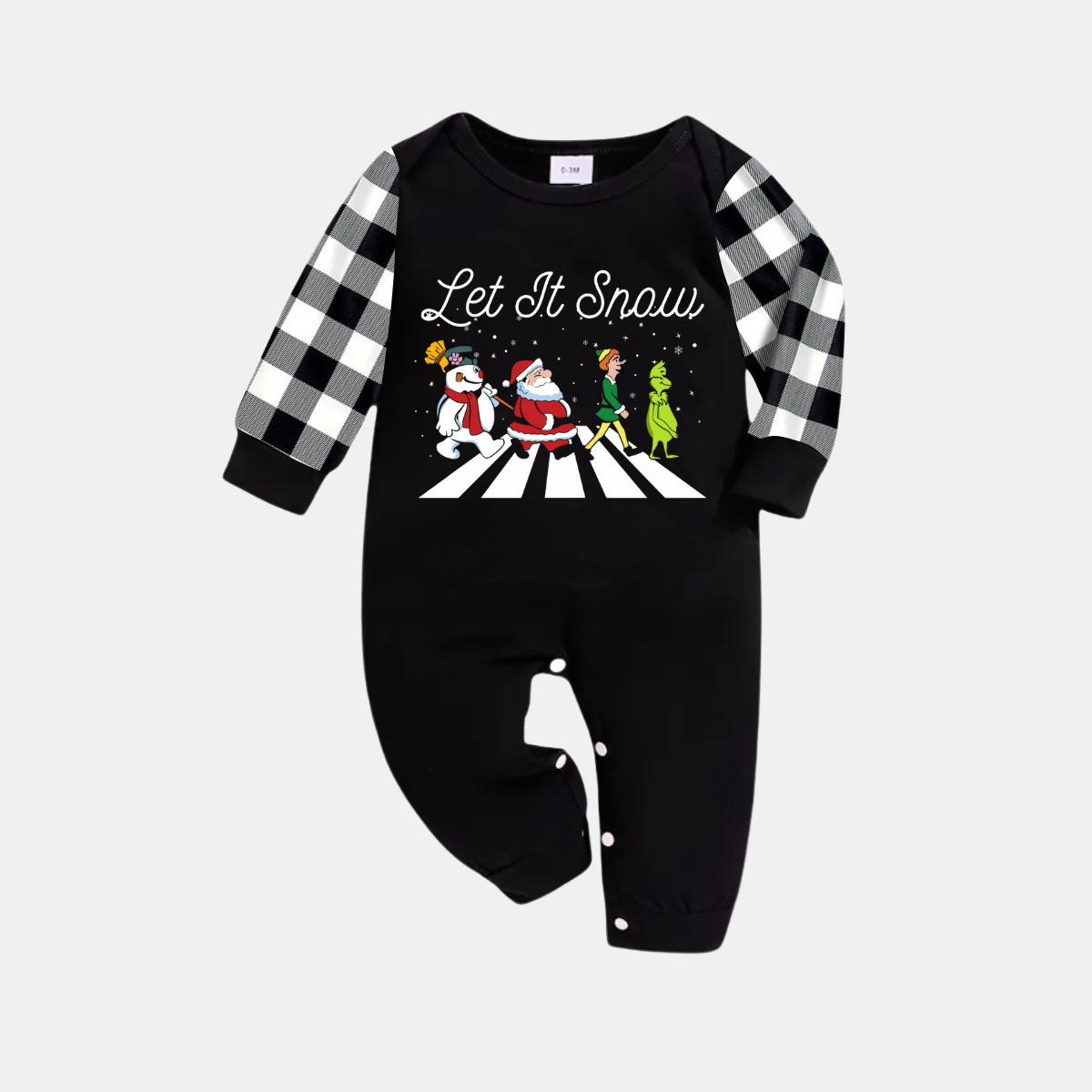 Black and White Plaid Christmas Pajamas Set with Santa Claus and Cartoon Pattern Print