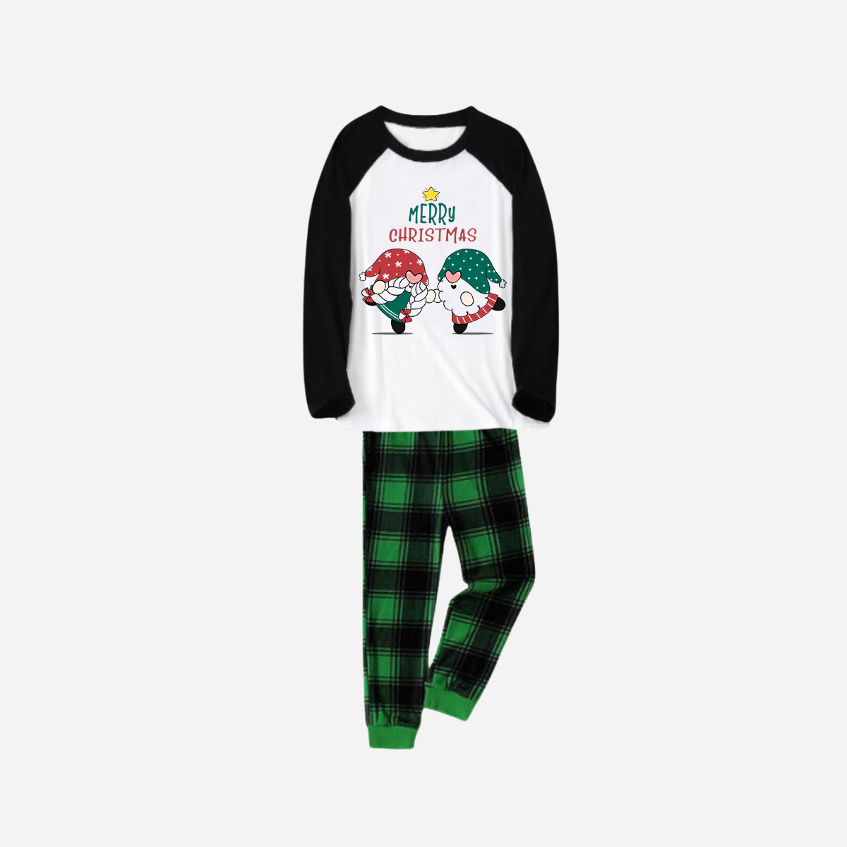 Black Raglan Top Green Plaid Christmas Pajamas Set With Gnome and Merry Christmas Text Print
