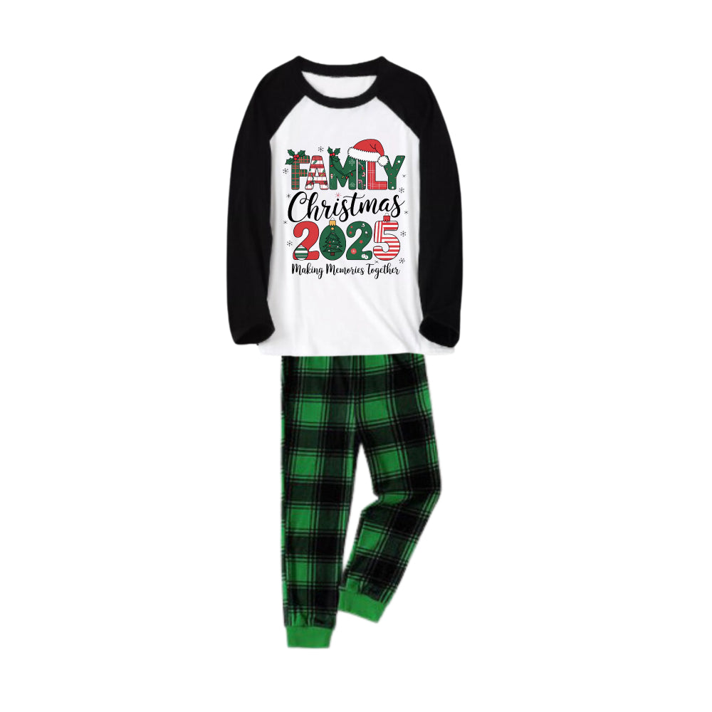 Black Raglan Top Green Plaid Christmas Pajamas Set With Holiday Lettering
