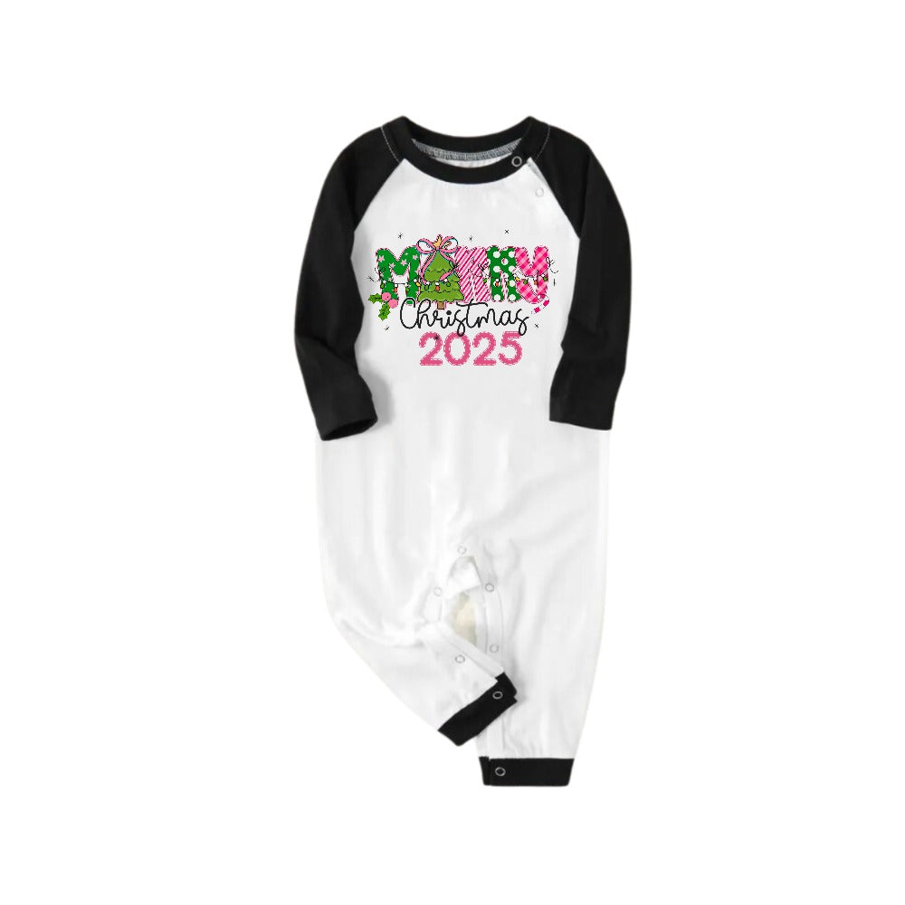 Black Raglan Top Green Plaid Christmas Pajamas Set With Merry Christmas 2025 Holiday Text