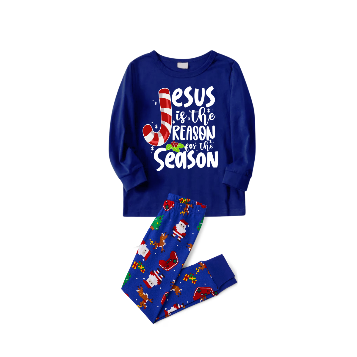 Blue Christmas Pajama Set with Santa, Gingerbread, and Candy Cane Design