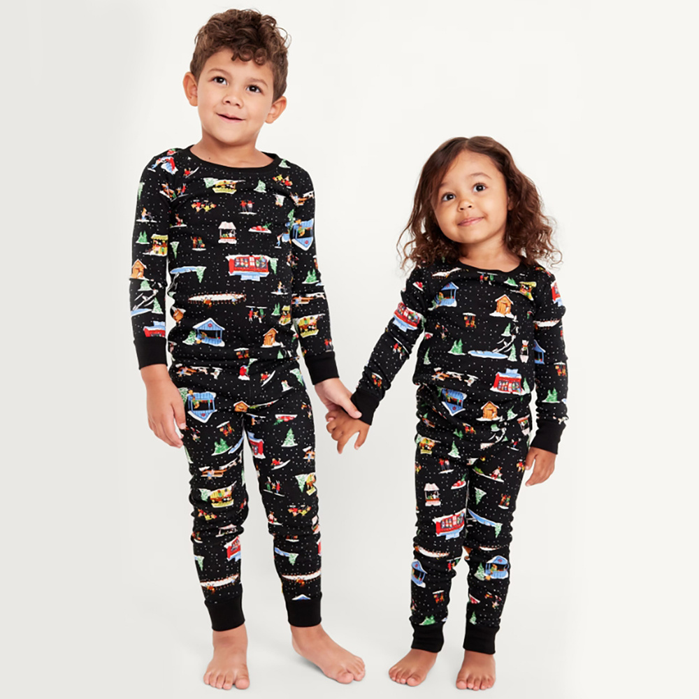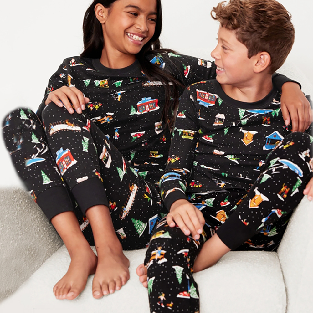 Christmas Family Matching Pajamas Black All Over Print Kids Pajama Set