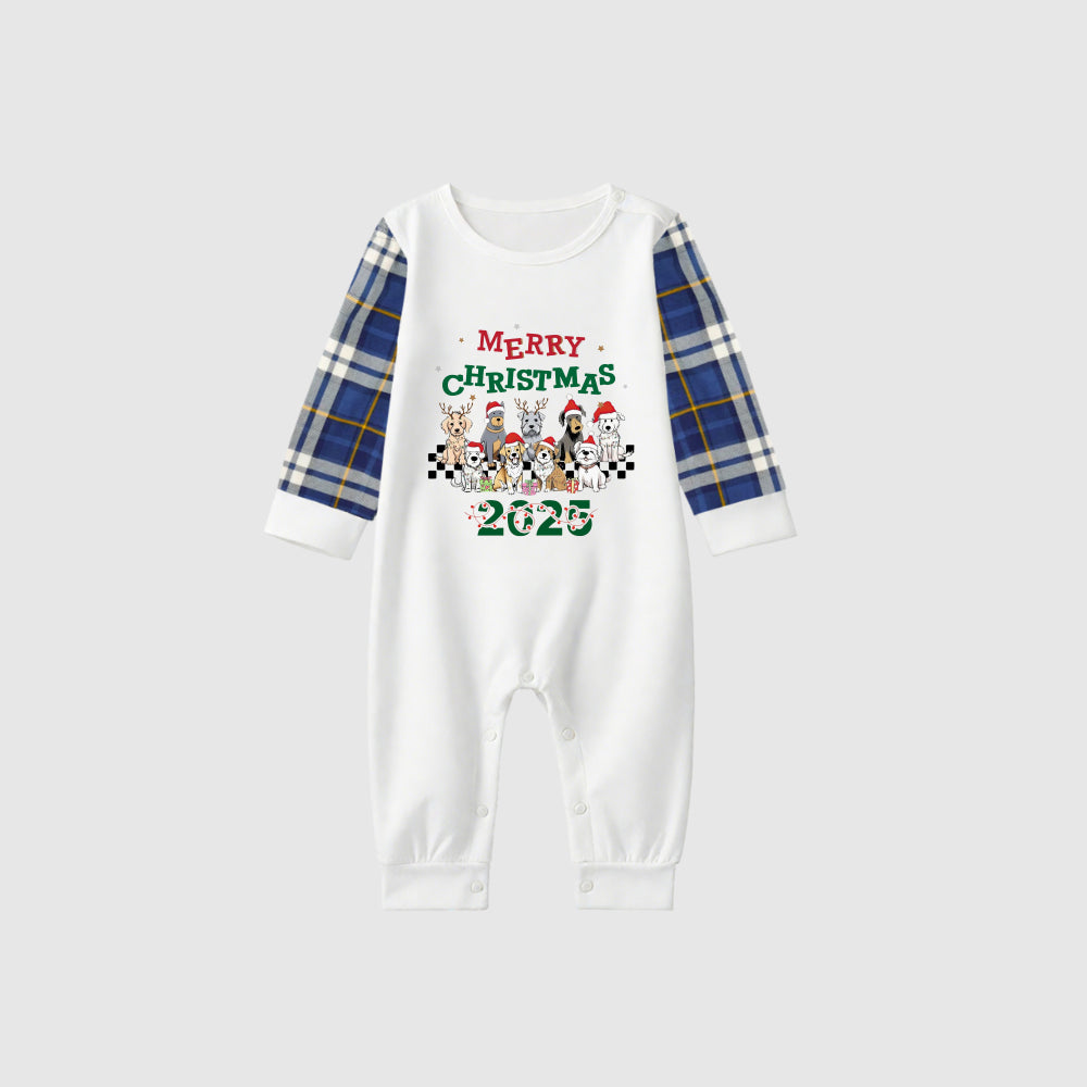 • Christmas Family Matching Pajamas-Blue Raglan Top Blue Plaid Pants Pjs Set with Doggy and "Merry Christmas" Letter Print