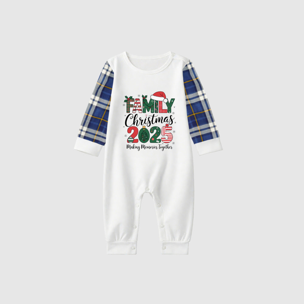 Christmas Family Matching Pajamas-Blue Raglan Top Blue Plaid Pants Pjs Set with "Family Christmas 2025" Print