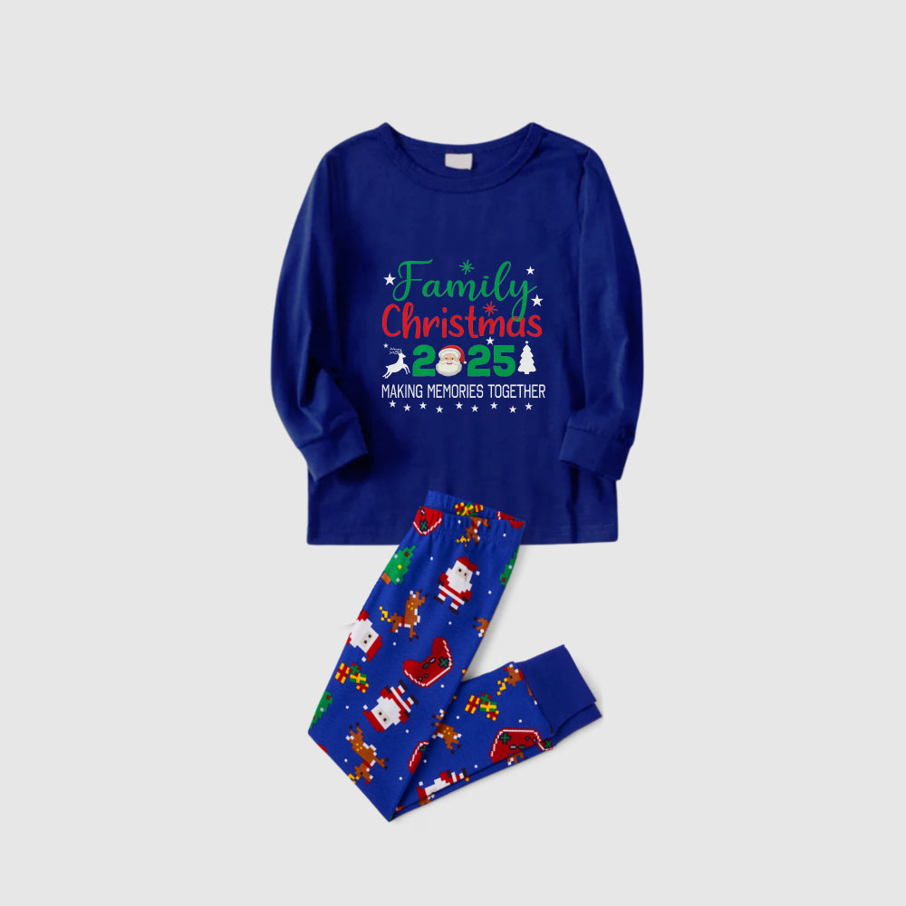 Christmas Family Matching Pajamas-Cozy Blue Pjs Set with "Family Christmas 2025" and Santa Pattern Print