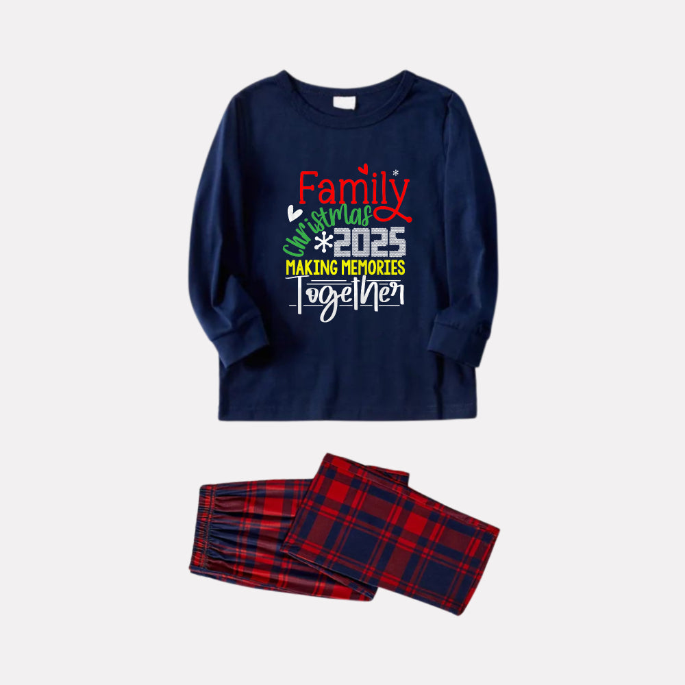 Christmas Family Matching Pajamas-Navy & Red Plaid Pjs Set with "Family Christmas 2025 Making Memories Together" Slogan Print