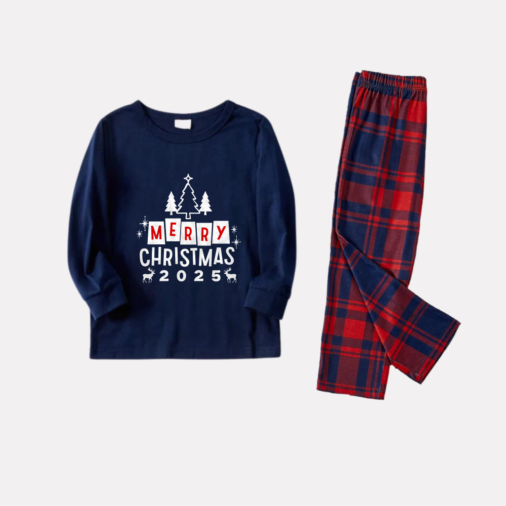 Christmas Family Matching Pajamas-Navy & Red Plaid Pjs Set with "Merry Christmas" Print