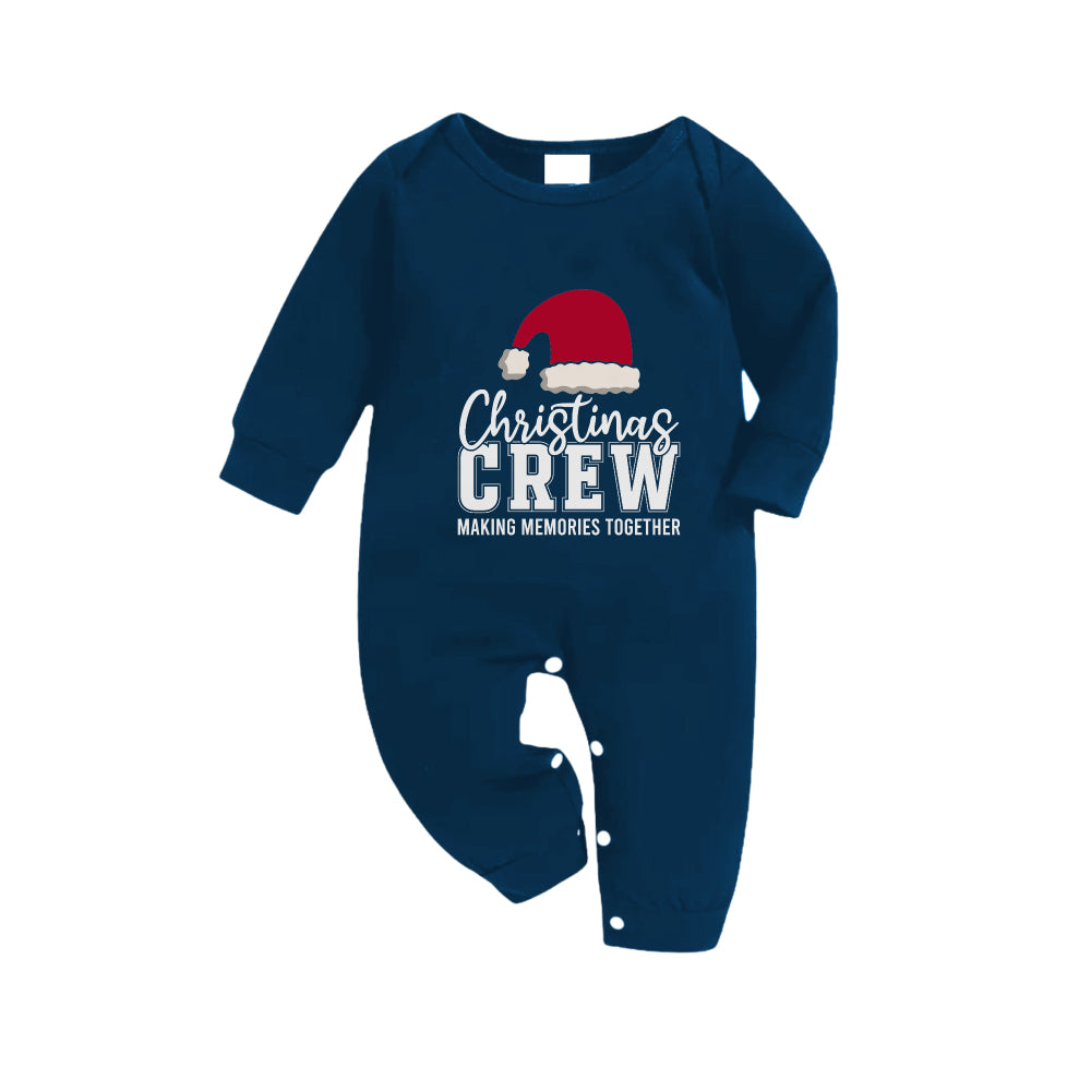 • Christmas Family Matching Pajamas-Navy & Sky Blue Plaid Pjs Set with "Christmas Crew Making Memories Together" and Santa Hat Pattern Print