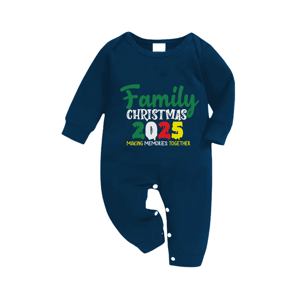 Christmas Family Matching Pajamas-Navy & Sky Blue Plaid Pjs Set with "Family Christmas 2025" Colorful Slogan Print