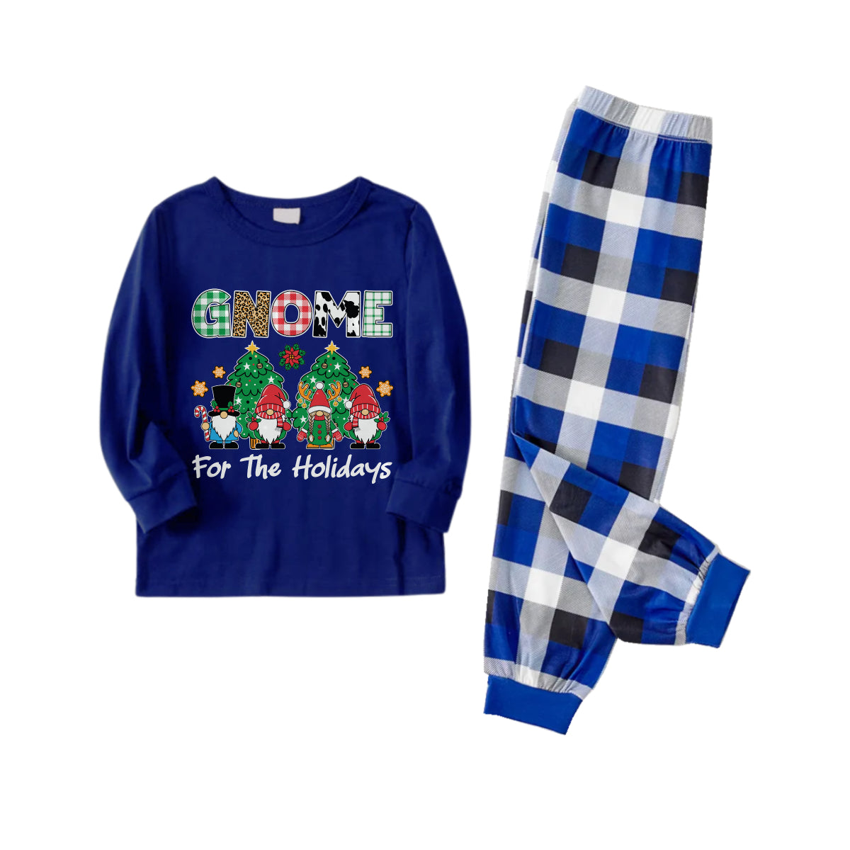 Christmas Family Matching Pajamas-Navy & White Plaid Pjs Set with "Gnome For The Holidays" Print