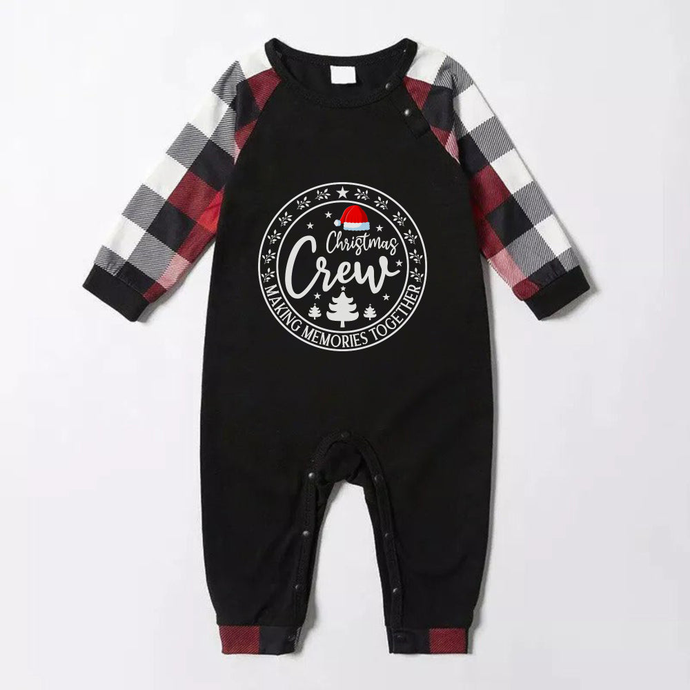 Christmas Family Matching Pajamas-Red and Gray Plaid Pjs set with “Christmas Crew” and Santa Hat Pattern Print