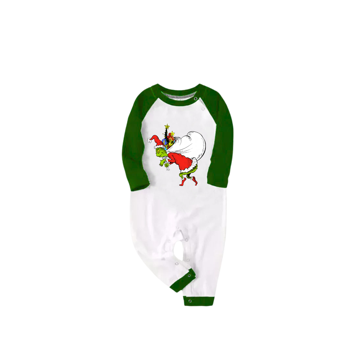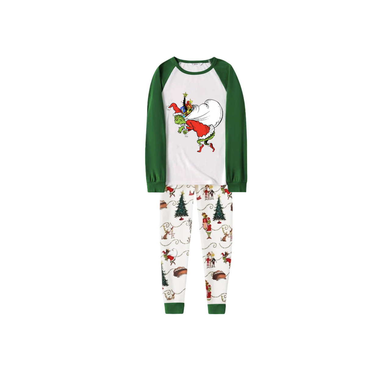 Christmas Green Pajamas Set With Cartoon Pattern Print