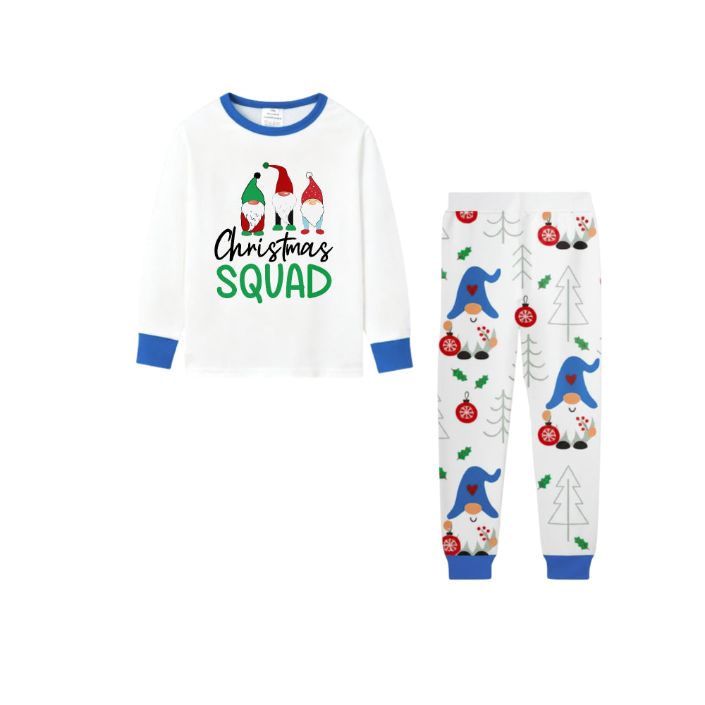 Christmas Holiday Family Blue Pajama Set Featuring Christmas Gnome Pattern