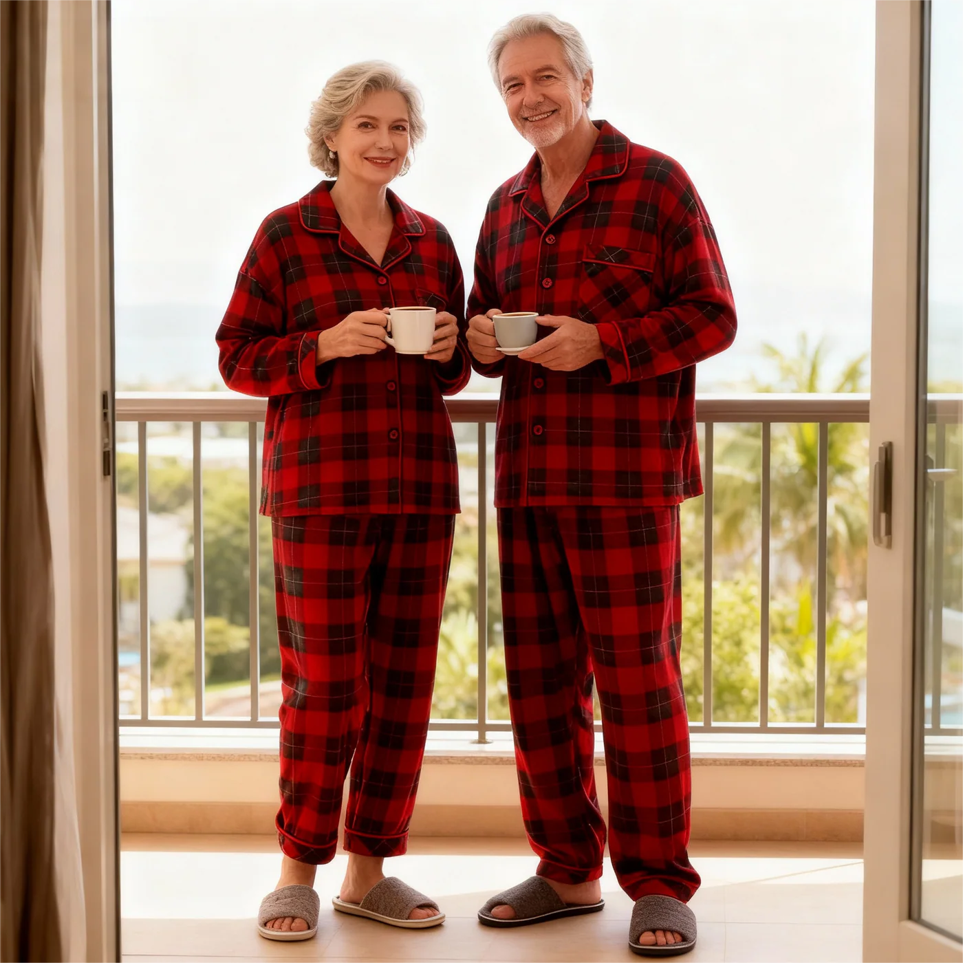• Christmas Plaid Family Matching Pajamas Set - Red Plaid Button-down Sleepwear For Men, Women, Kids & Baby, Festive Holiday Pjs