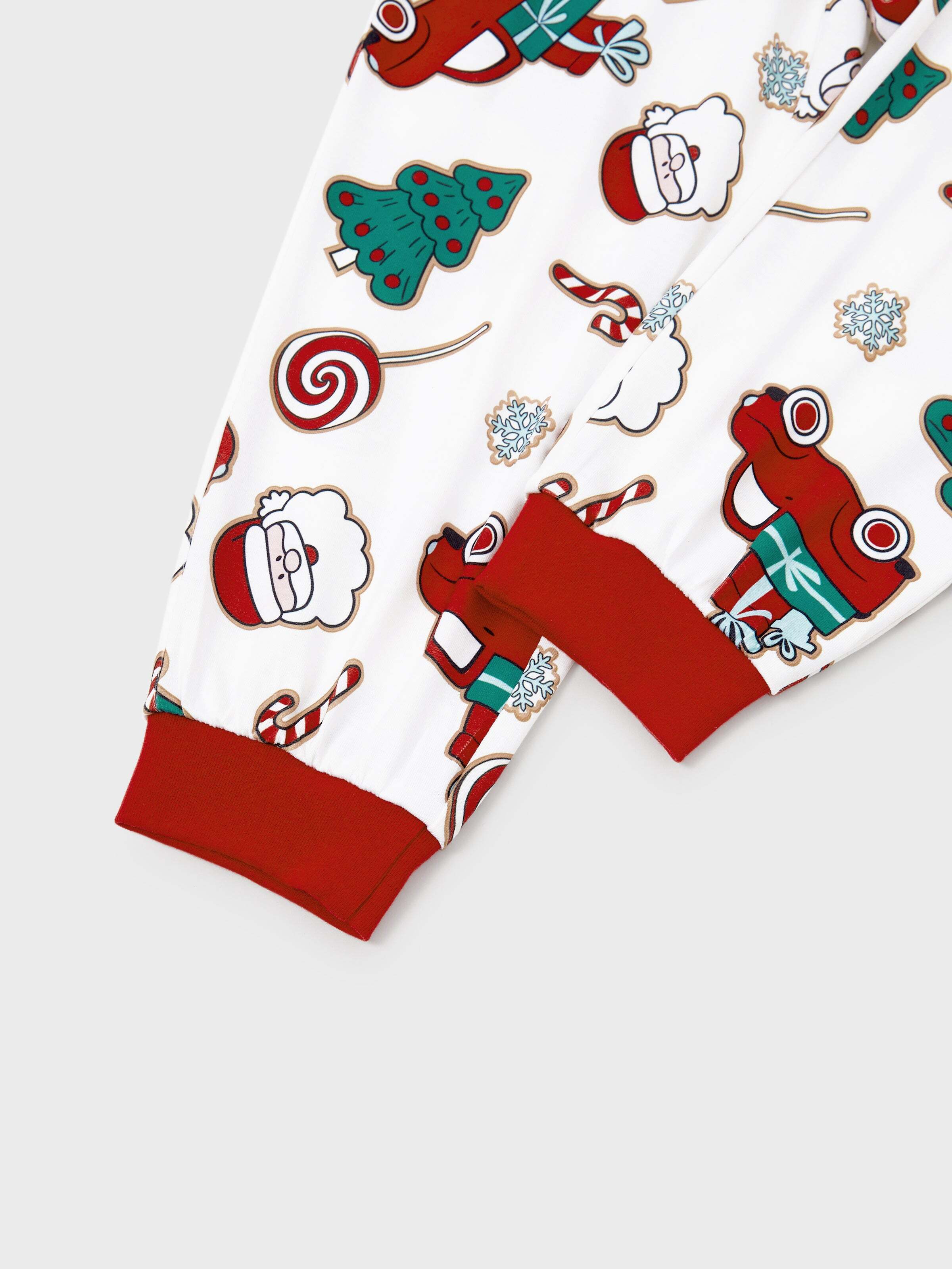 Christmas Matching Family Pajamas Set Santa Claus and Christmas Tree Print White PJS with Christmas Socks White