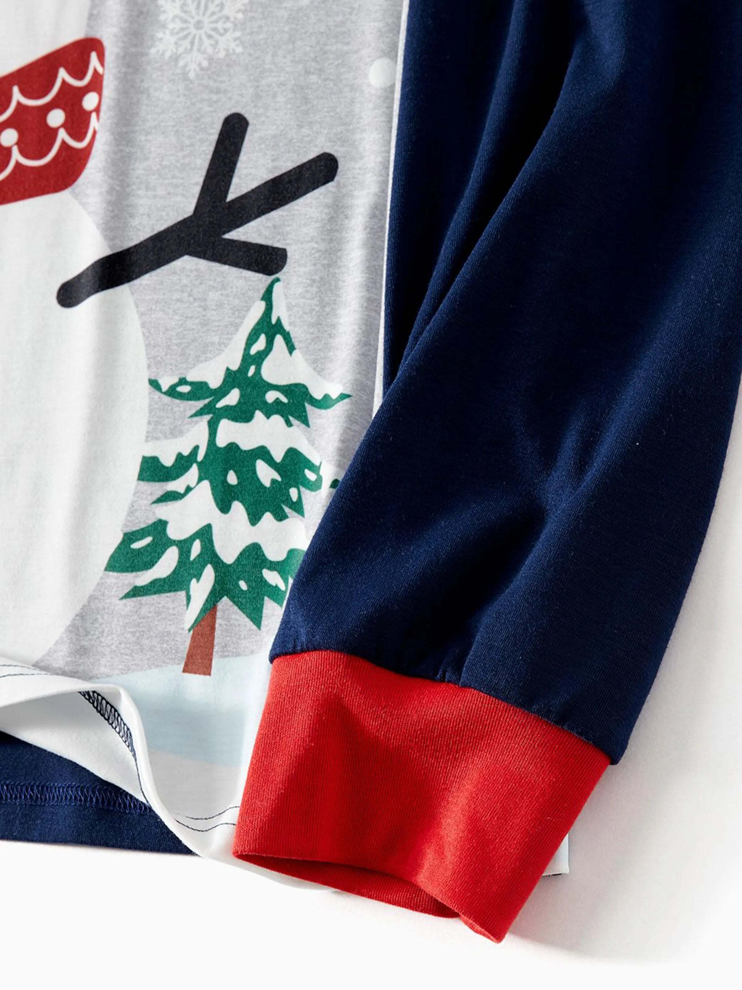 Christmas Snowman & Letter Print Family Matching Raglan-sleeve Pajamas Sets with Christmas Socks ColorBlock