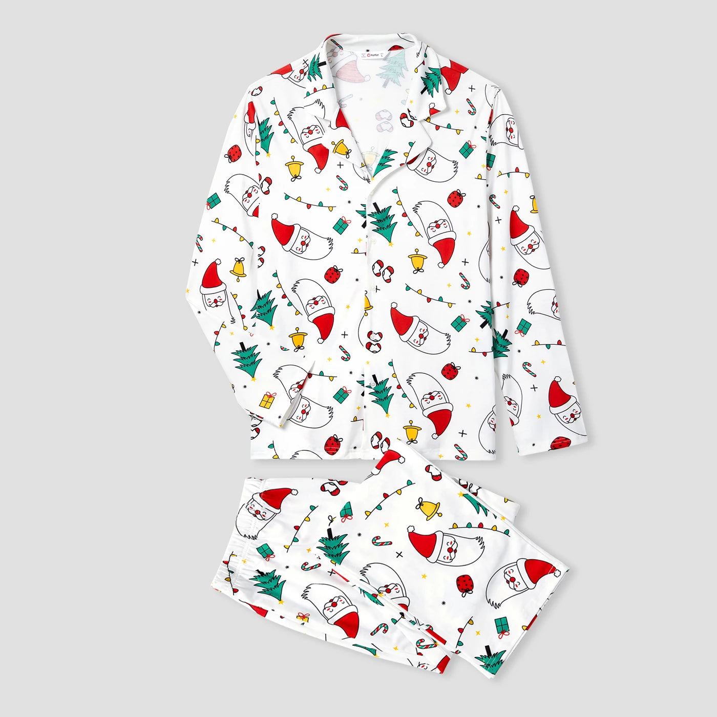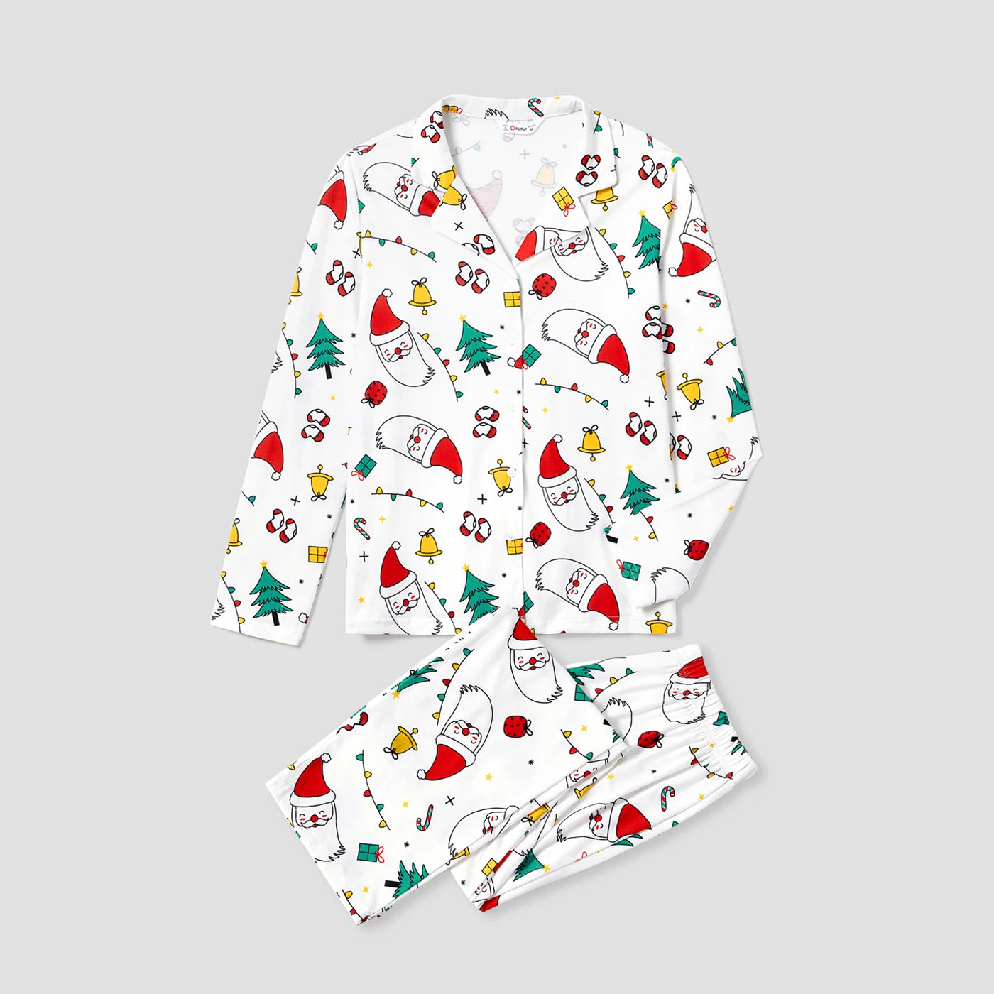 ⭐ Festive Christmas Prints: Adorned with classic holiday-themed graffiti featuring Santa Claus, Christmas trees, candy canes, and presents, these pajamas bring joyful Christmas vibes to your home.