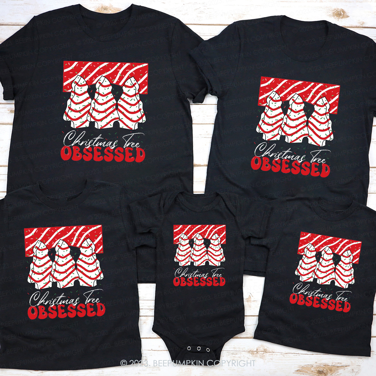 Christmas Tree Junkie Obsessed Retro Matching Shirts