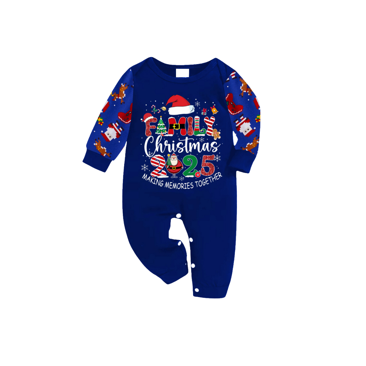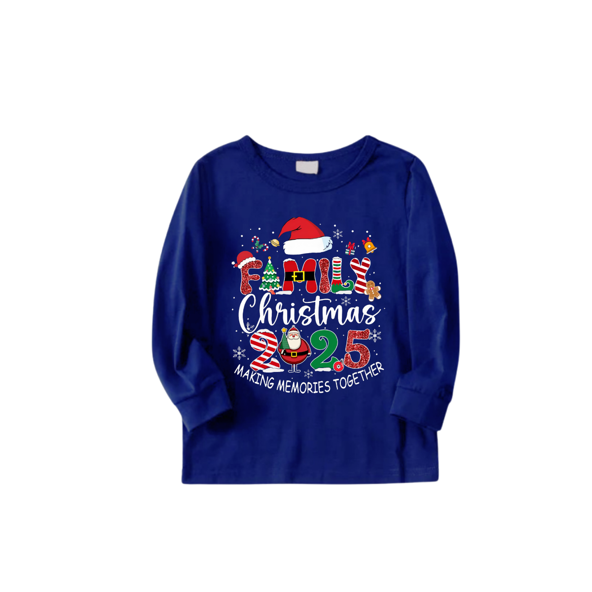 Cozy Blue Christmas Pajamas Set With "Family Christmas 2025 Making Memories Together" Text Print
