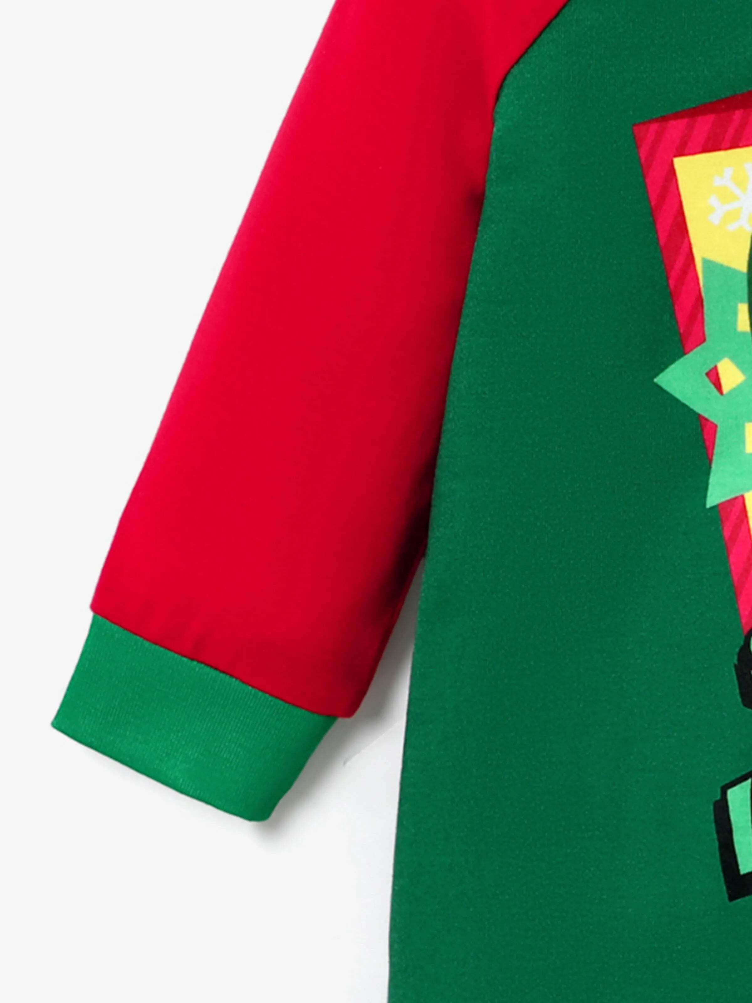 • Product features: Flame-resistant for safety, soft knit fabric, red and green color-block design with festive holiday-themed pants.