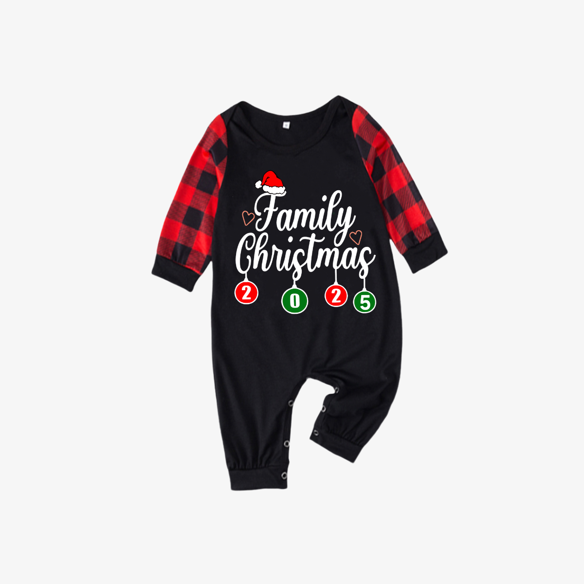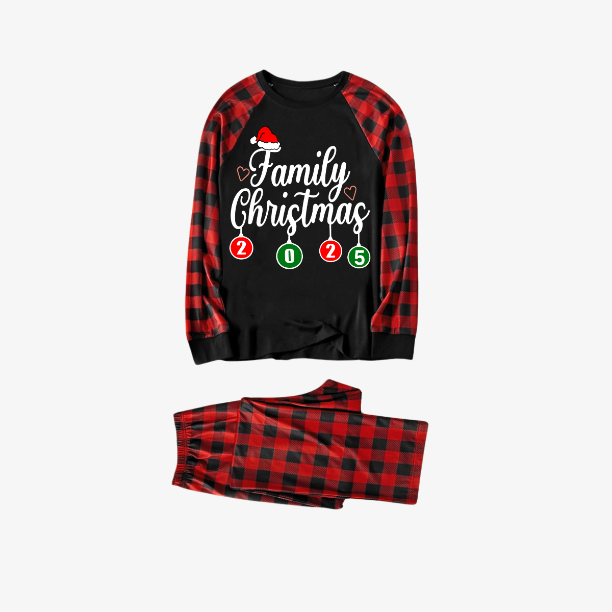 "Family Christmas 2025" Letter Printed Black & Red Plaid Family Matching Black Pajamas