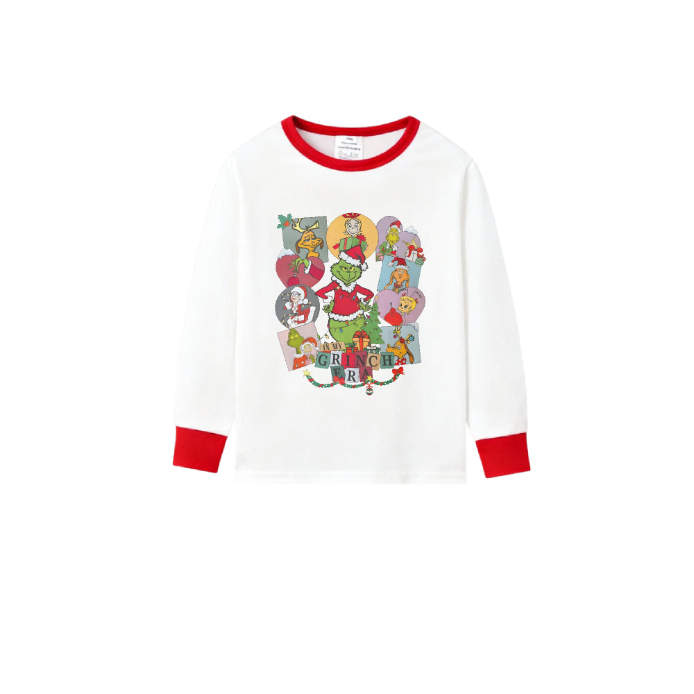 Family Christmas White Pajamas Set With Artistic Christmas Character Print