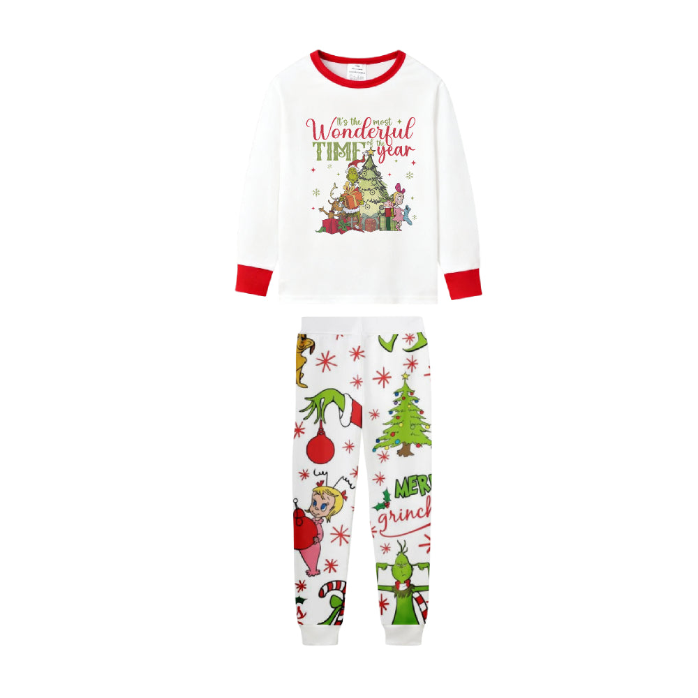Family Christmas White Pajamas Set With Cute Christmas Character Print