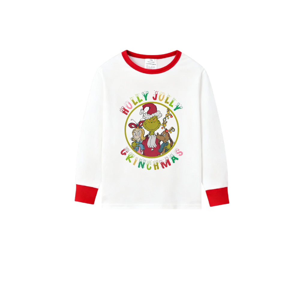 Family Christmas White Pajamas Set With Playful Christmas Character Print