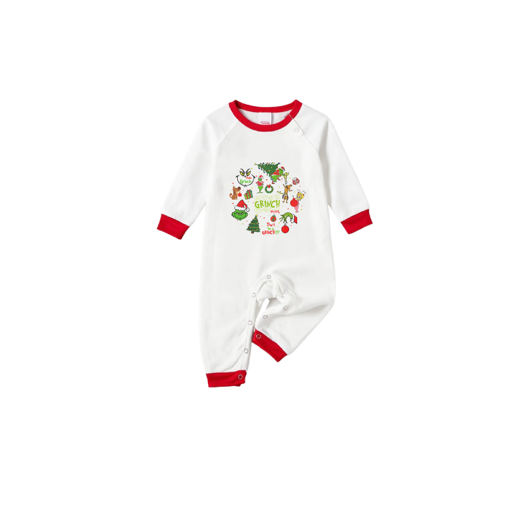 Family Christmas White Pajamas Set With Xmas Pattern Design