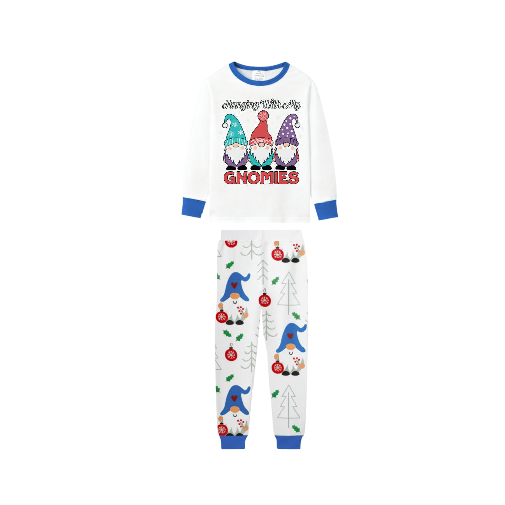 Family Holiday Christmas Blue Sleepwear Set with Christmas Gnome Print