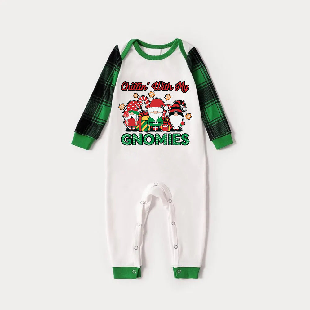 Green Raglan Top Green Plaid Christmas Pajamas Set With "Chillin With My GNOMIES" Green and Red Gnomes Print