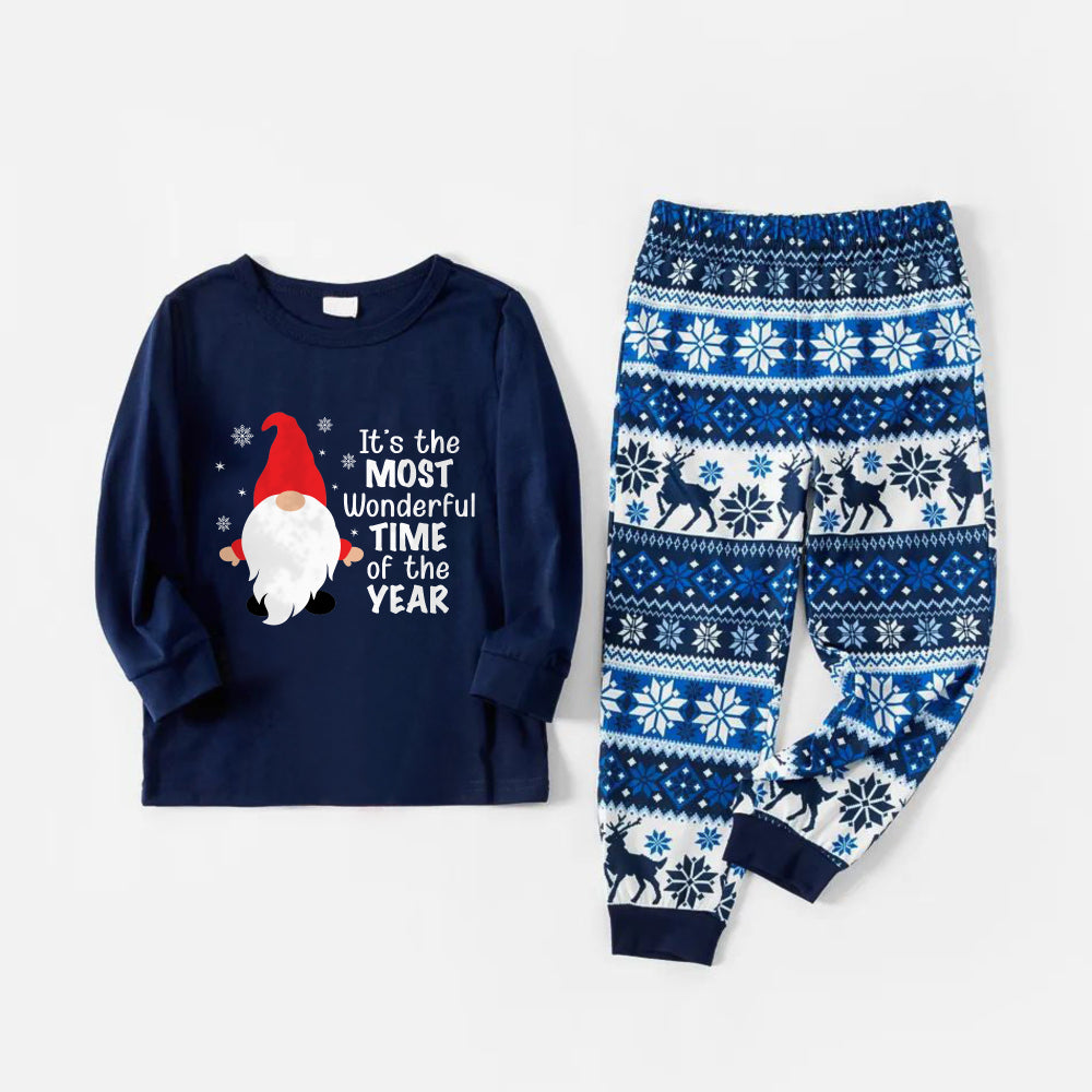 Joyful Blue Christmas Pajamas Set Featuring Gnome with Santa Quotes
