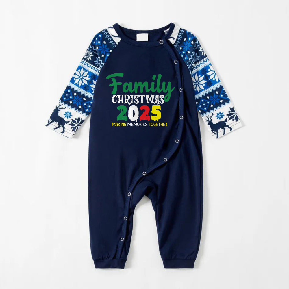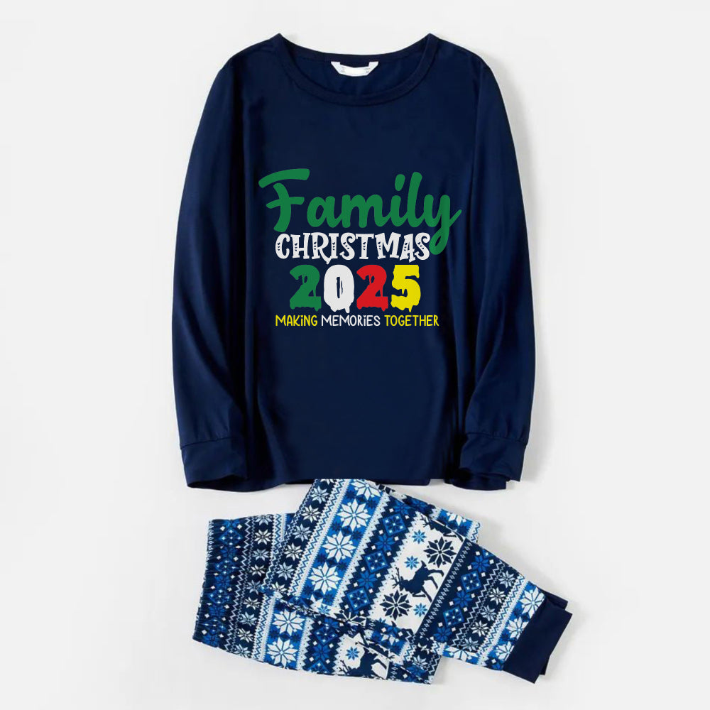 Joyful Blue Christmas Pajamas Set With 2025 Family Christmas Phrases